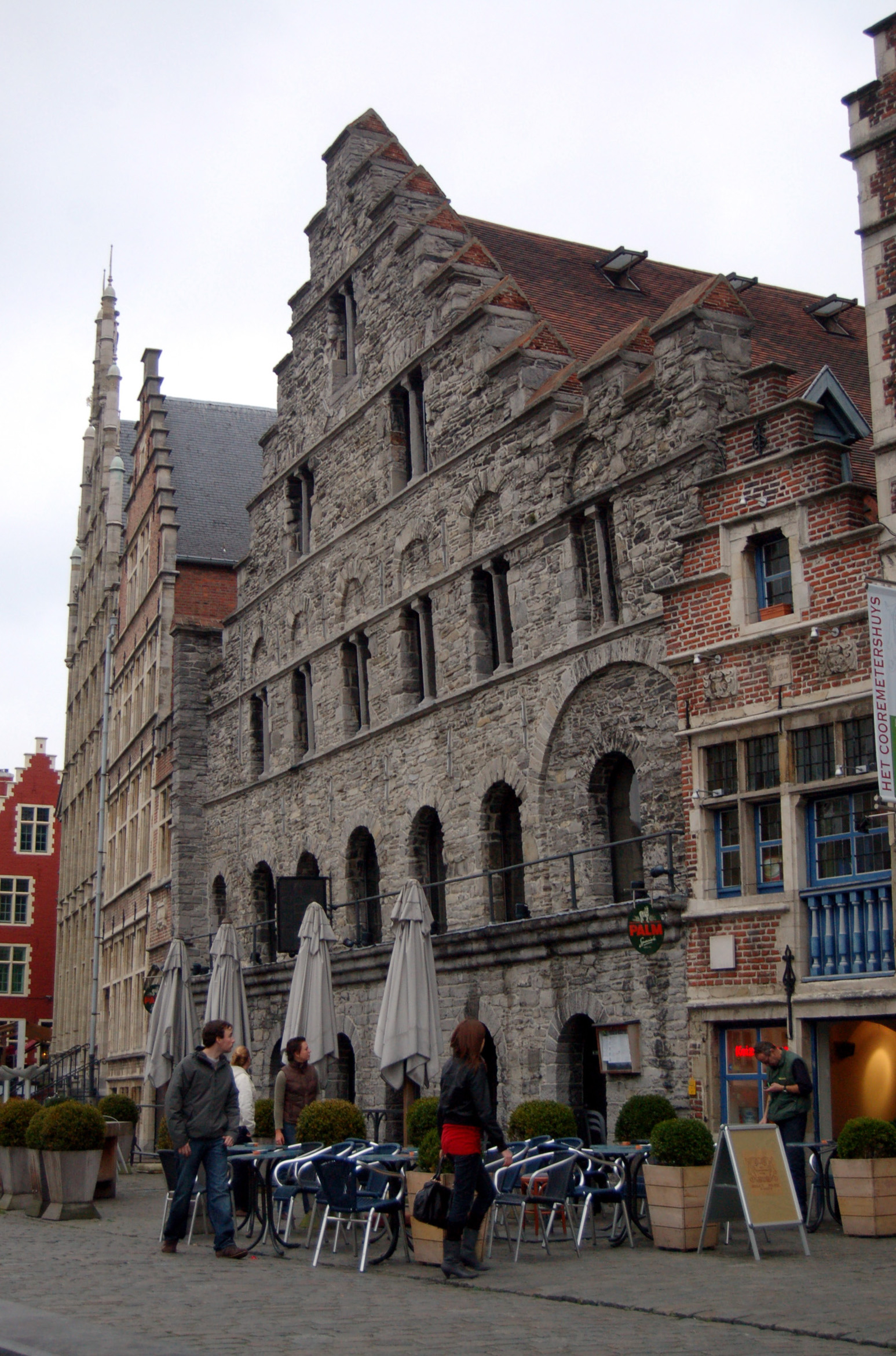 Fachada Casa Gremial Korenstapelhuis o casa del maíz en Gante, Bélgica.