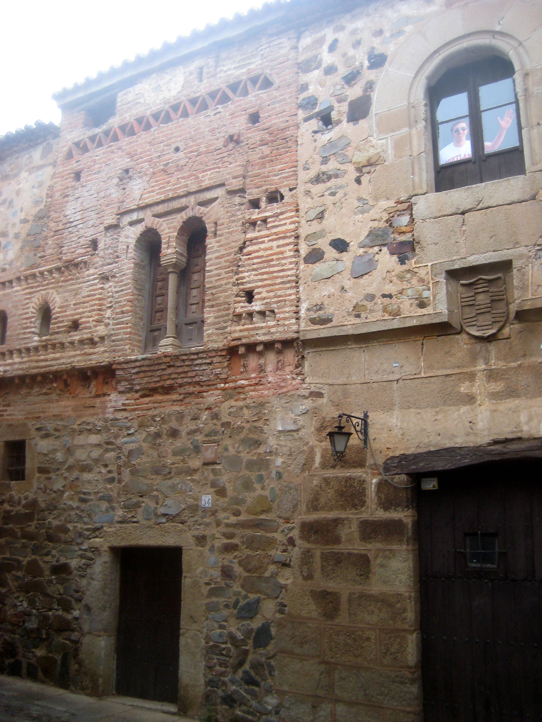 Fachada de la Casa Mudéjar de la Cuesta de Aldana en Cáceres. Es una casa fuerte de estilo gótico-mudéjar situada en el interior del recinto monumental de la ciudad de Cáceres.