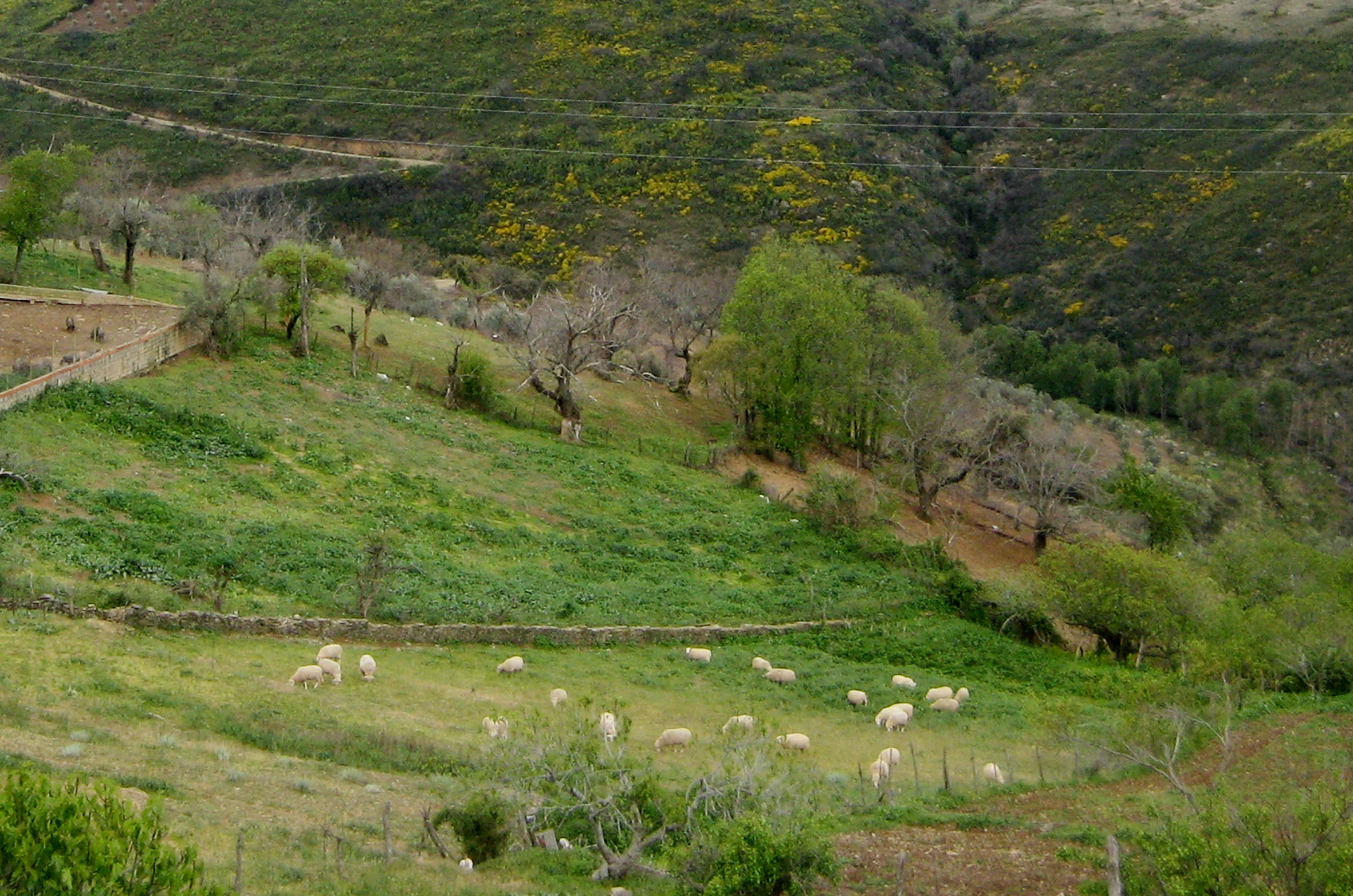 Ovejas pastando en Jarandilla de la Vera en Cáceres.