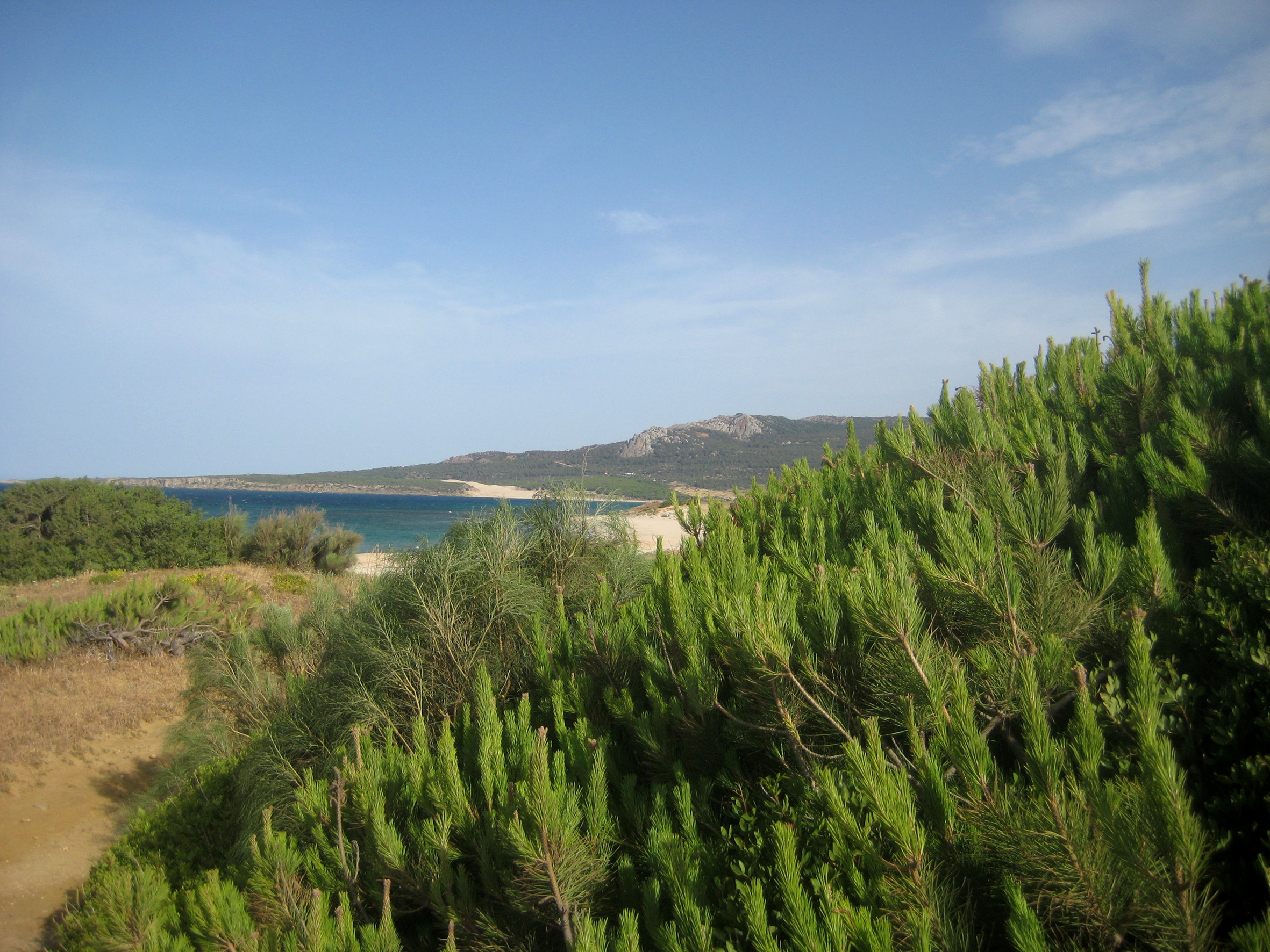 Vista de vegetación y de la playa de Bolonia en Cádiz.
