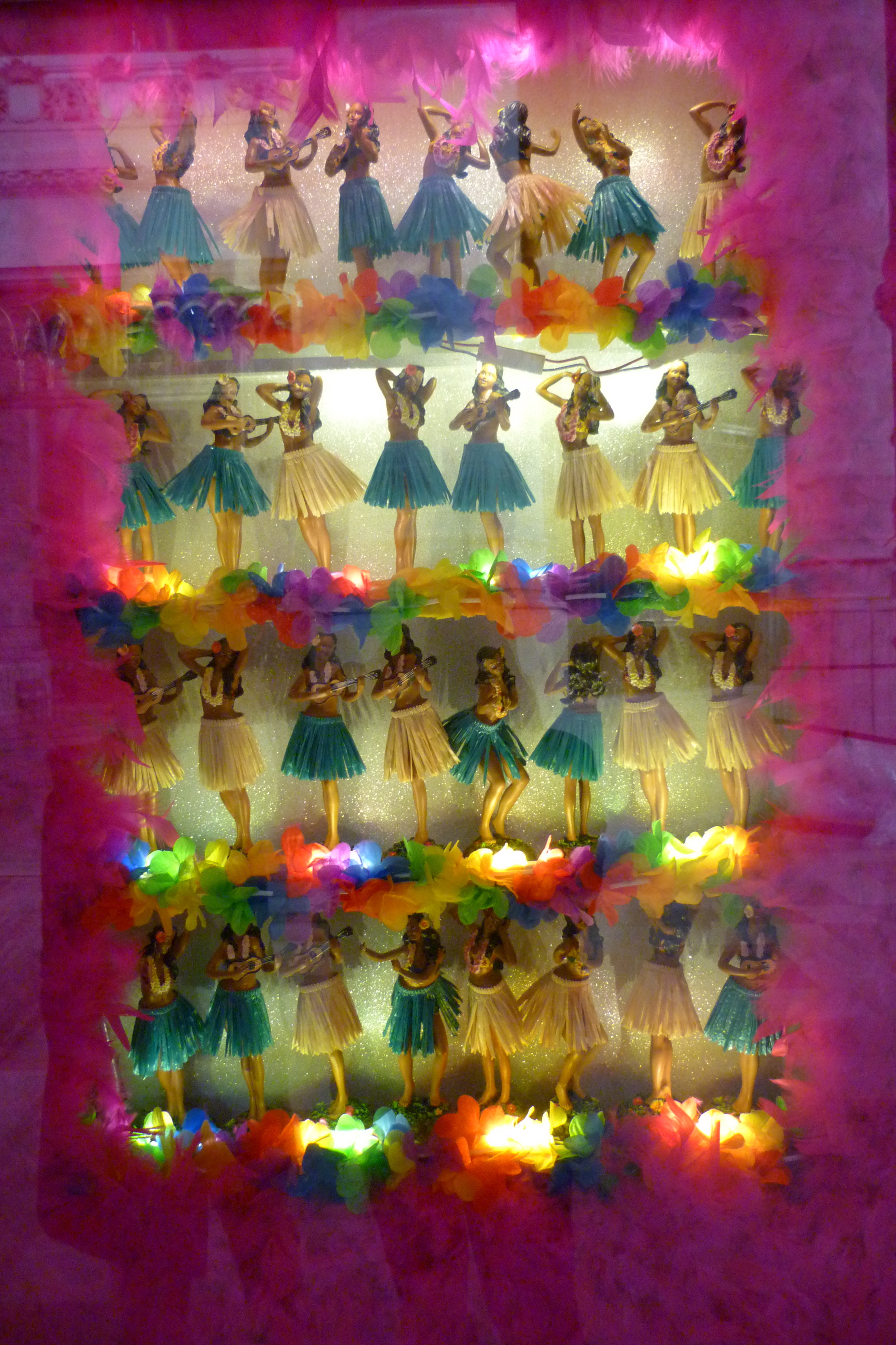 Expositor muñecas hawaianas