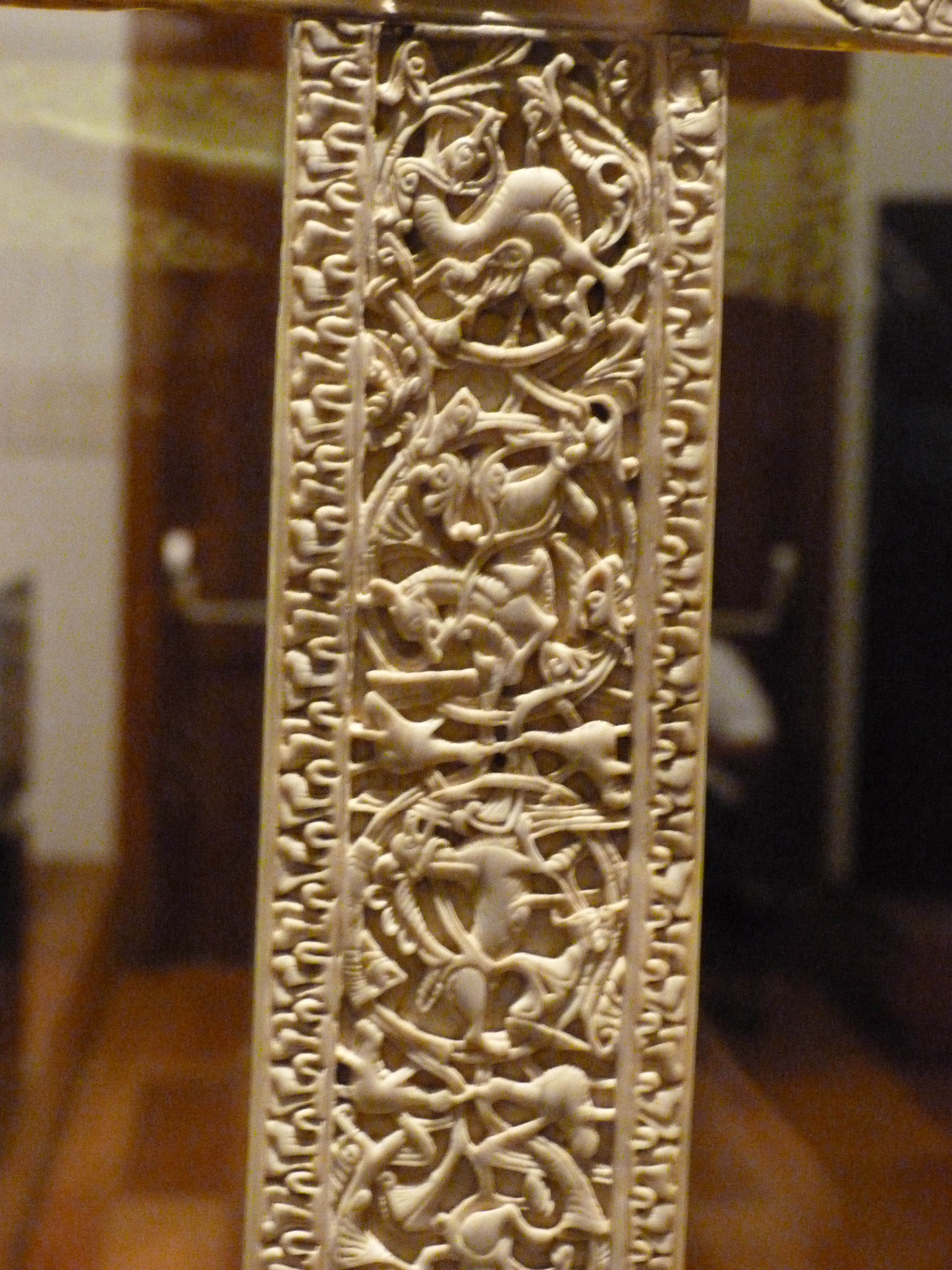 Detalle del crucifijo de don Fernando y doña Sancha. El crucifijo de don Fernando y doña Sancha es una obra maestra en el arte de la eboraria, datado alrededor del año 1063 y que se conserva en el Museo Arqueológico Nacional de Madrid. Es una figura exempta.