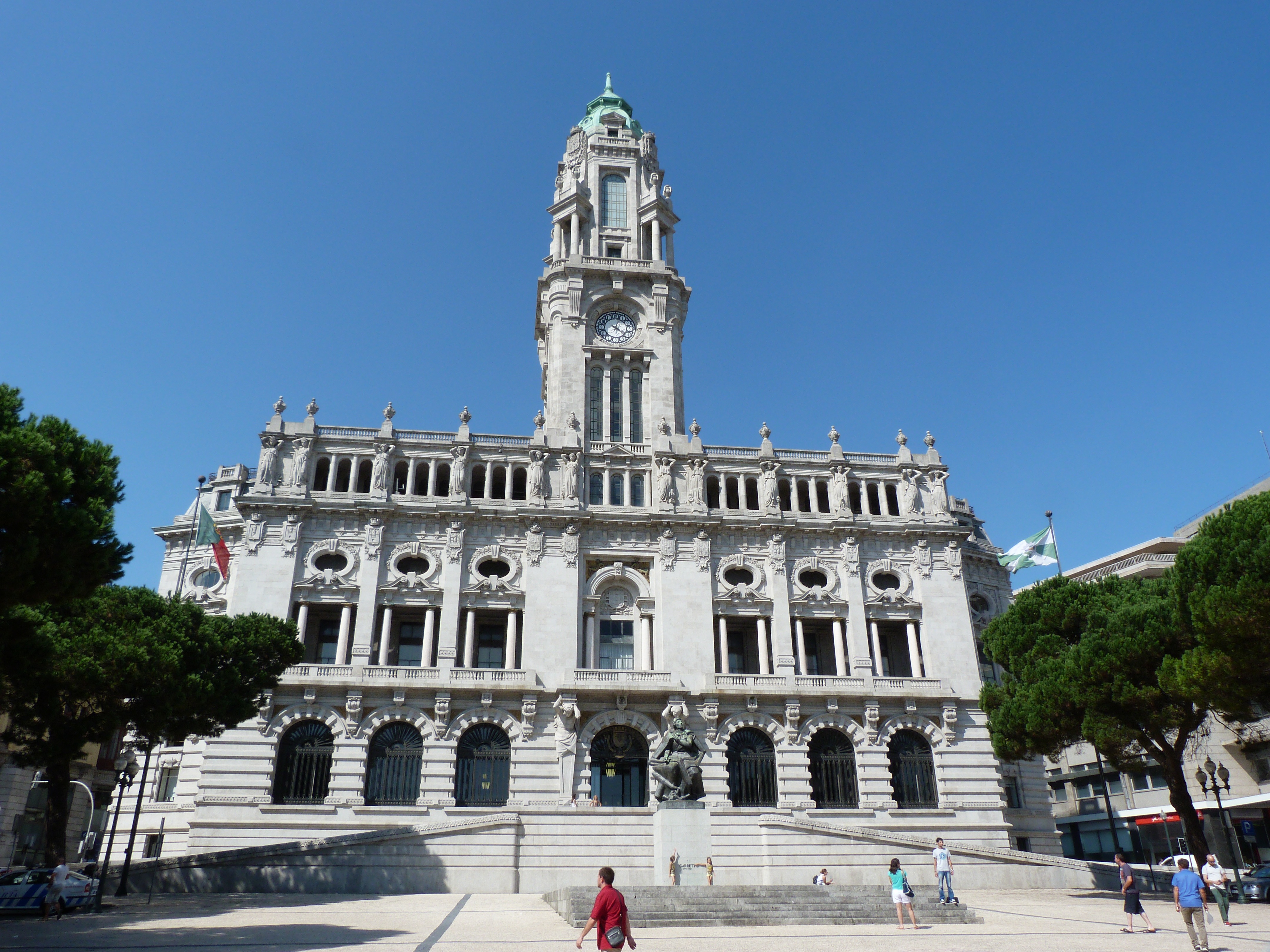 Fachada del ayuntamiento de Oporto que se encuentra al final de la Avenida dos Aliados.