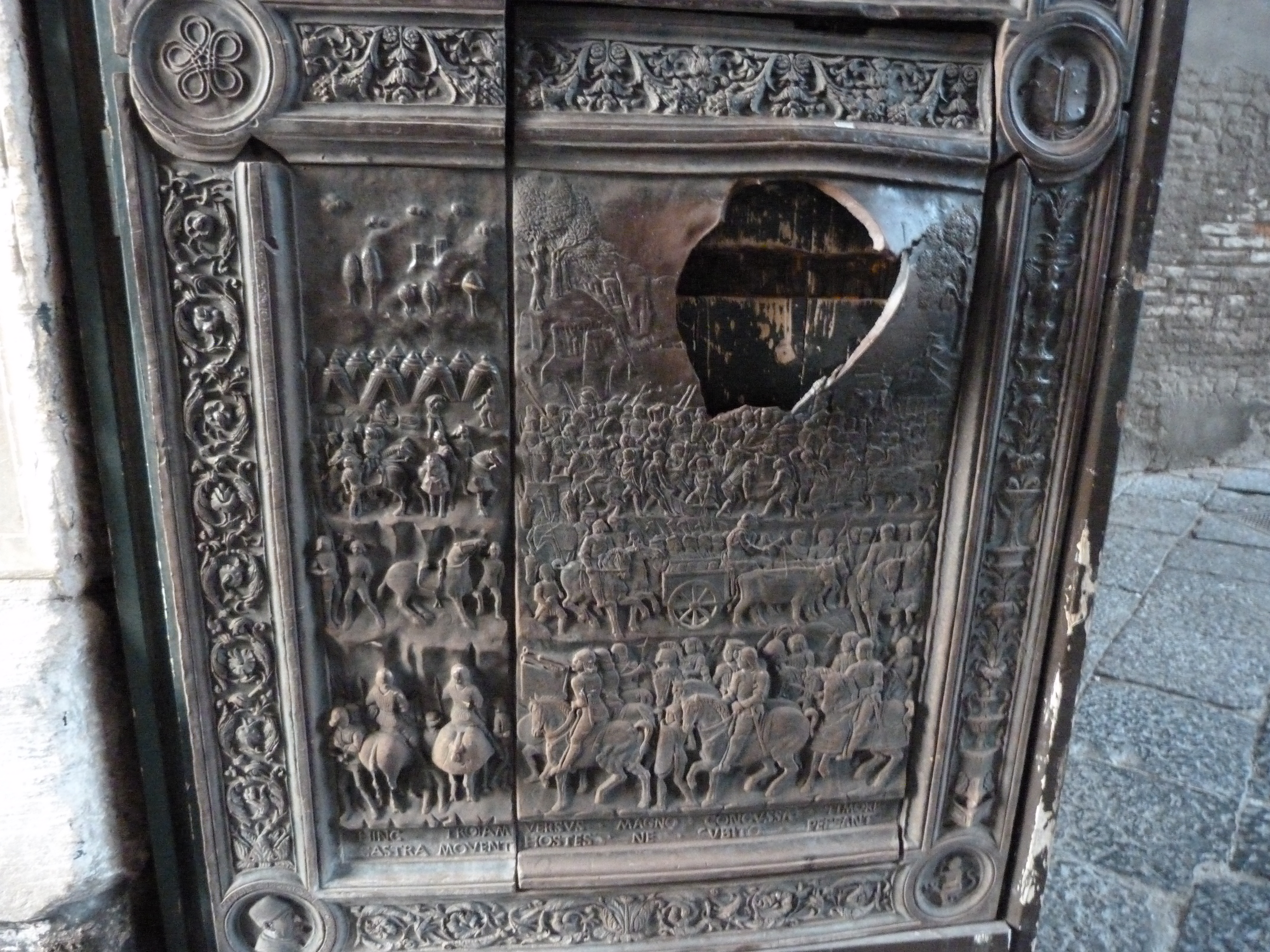 Soldados en relieve en la puerta de acceso del castillo nuevo de Nápoles.