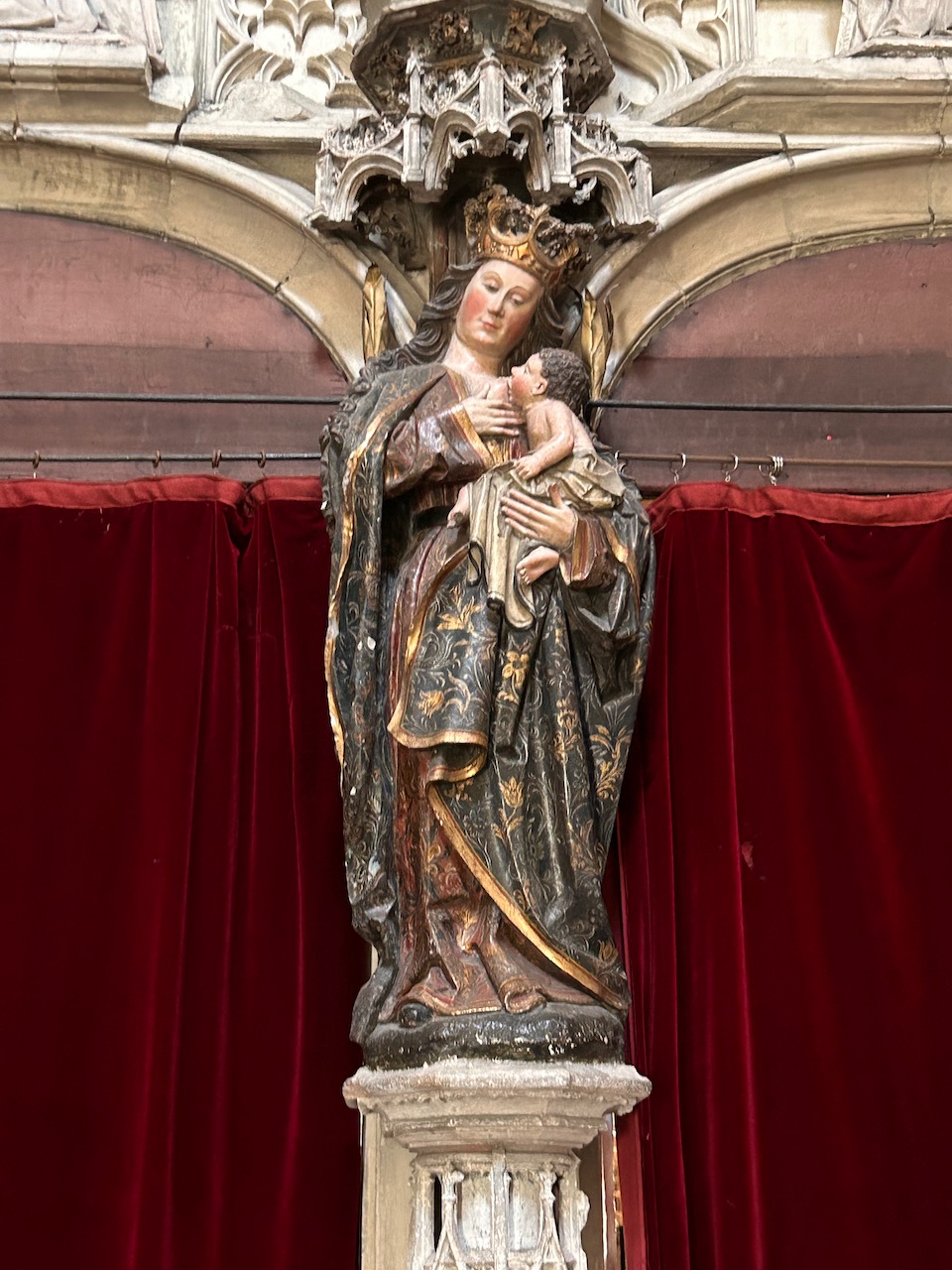 Escultura virgen con el niño en la capilla de Nuestra Señora del Rey Casto de la Catedral de Oviedo o Santa Iglesia Basílica Catedral Metropolitana de San Salvador de Oviedo