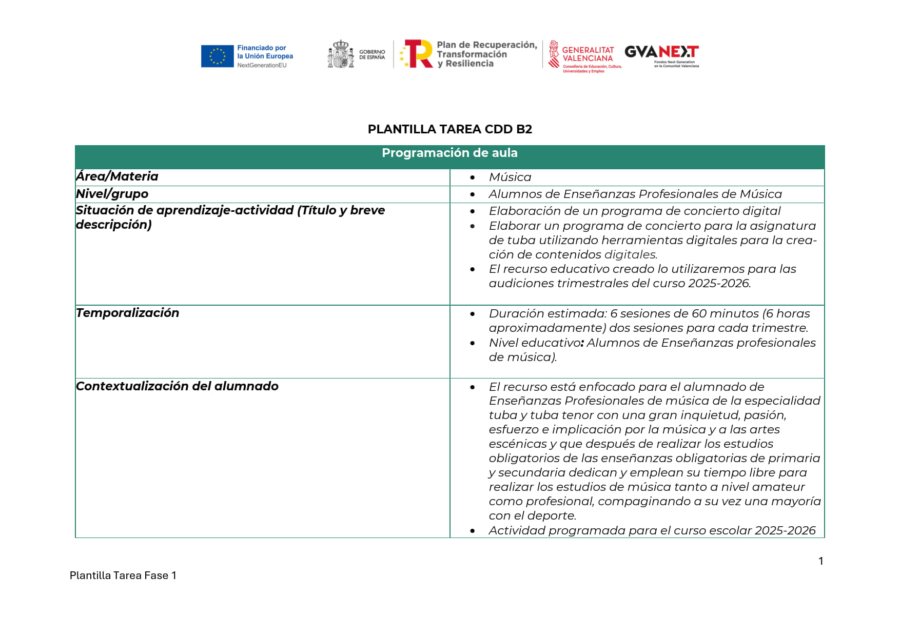 • Elaboración de un programa de concierto digital