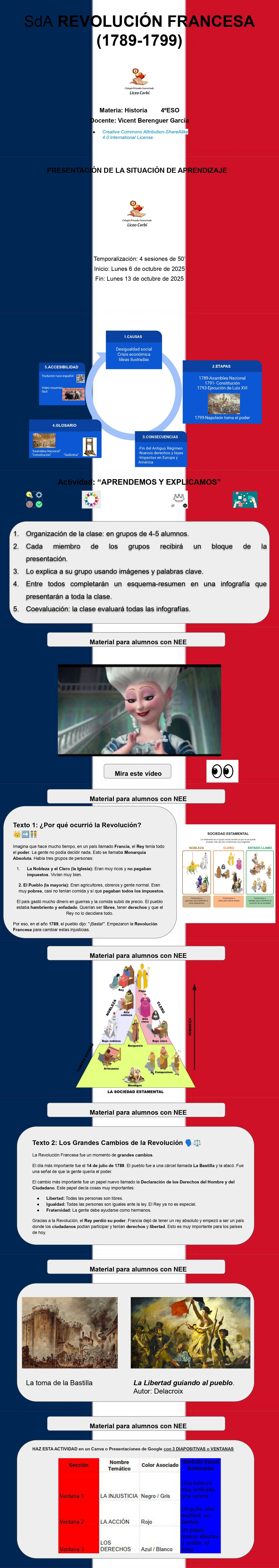Recurso sobre la Revolución francesa a partir del cual el alumnado, organizado en grupos, debe crear una infografía representativa sobre este período.