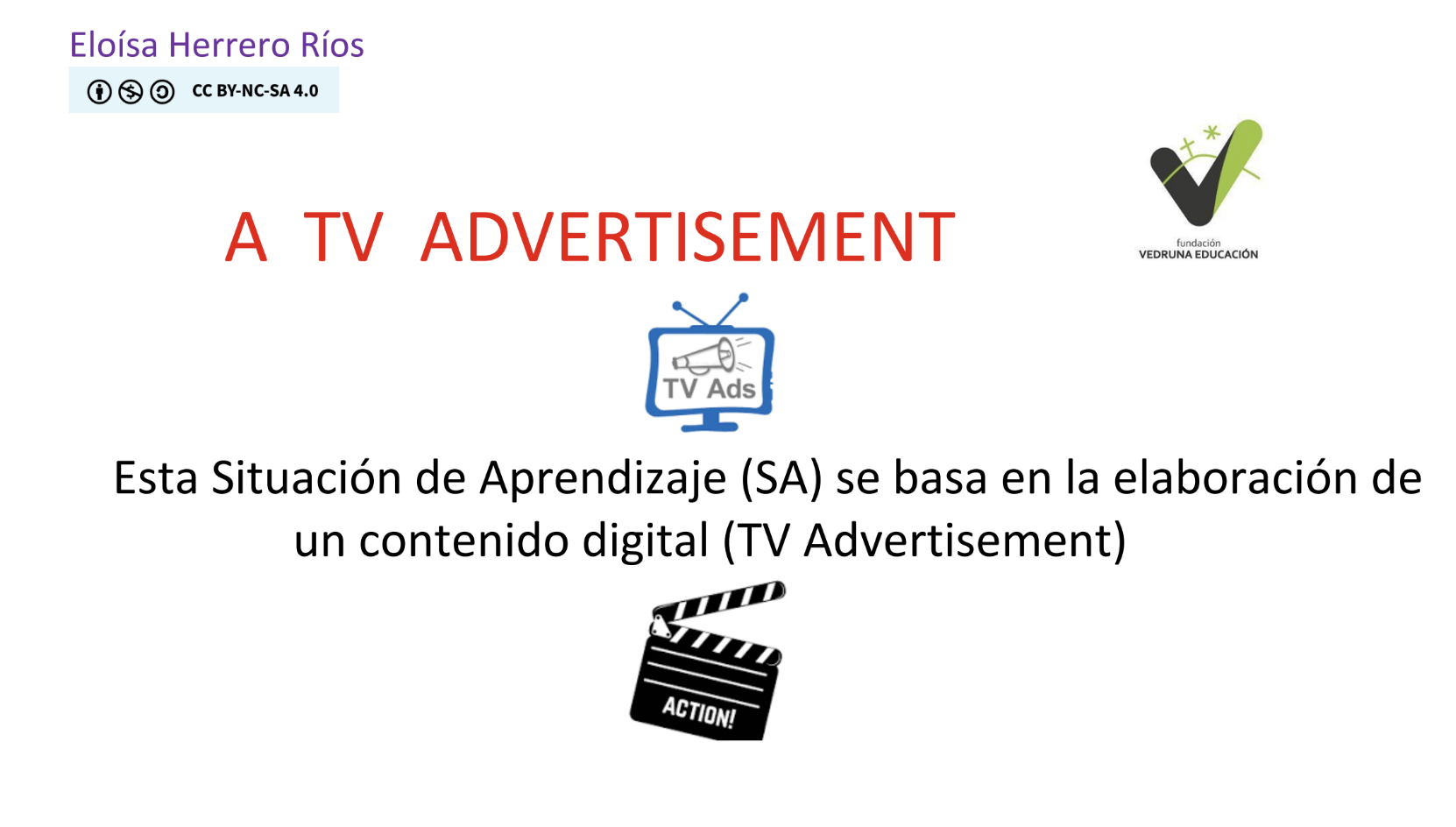 Con esta SA se pretende que el alumno rompa el hielo a la interpretación y grabe un anuncio de TV utilizando herramientas digitales. Luego en clase tendrá que editarlo. Tienen una guía, foro de preguntas y explicación de cómo hacerlo. Previamente hemos visto en clase algunos anuncios de otros años.