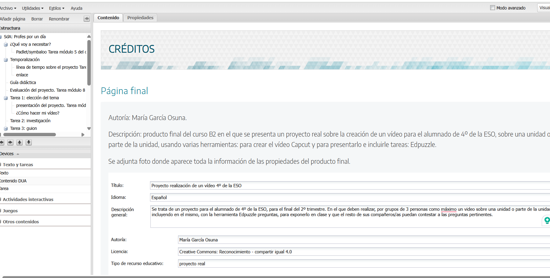 Se trata de un proyecto para el alumnado de 4º de la ESO, para el final del 2º trimestre. En el que deben realizar, por grupos de 3 personas como máximo un video sobre una unidad o parte de la unidad, incluyendo en el mismo, con la herramienta Edpuzzle preguntas, para exponerlo en clase y que el resto de sus compañeros/as puedan contestar a las preguntas pertinentes.