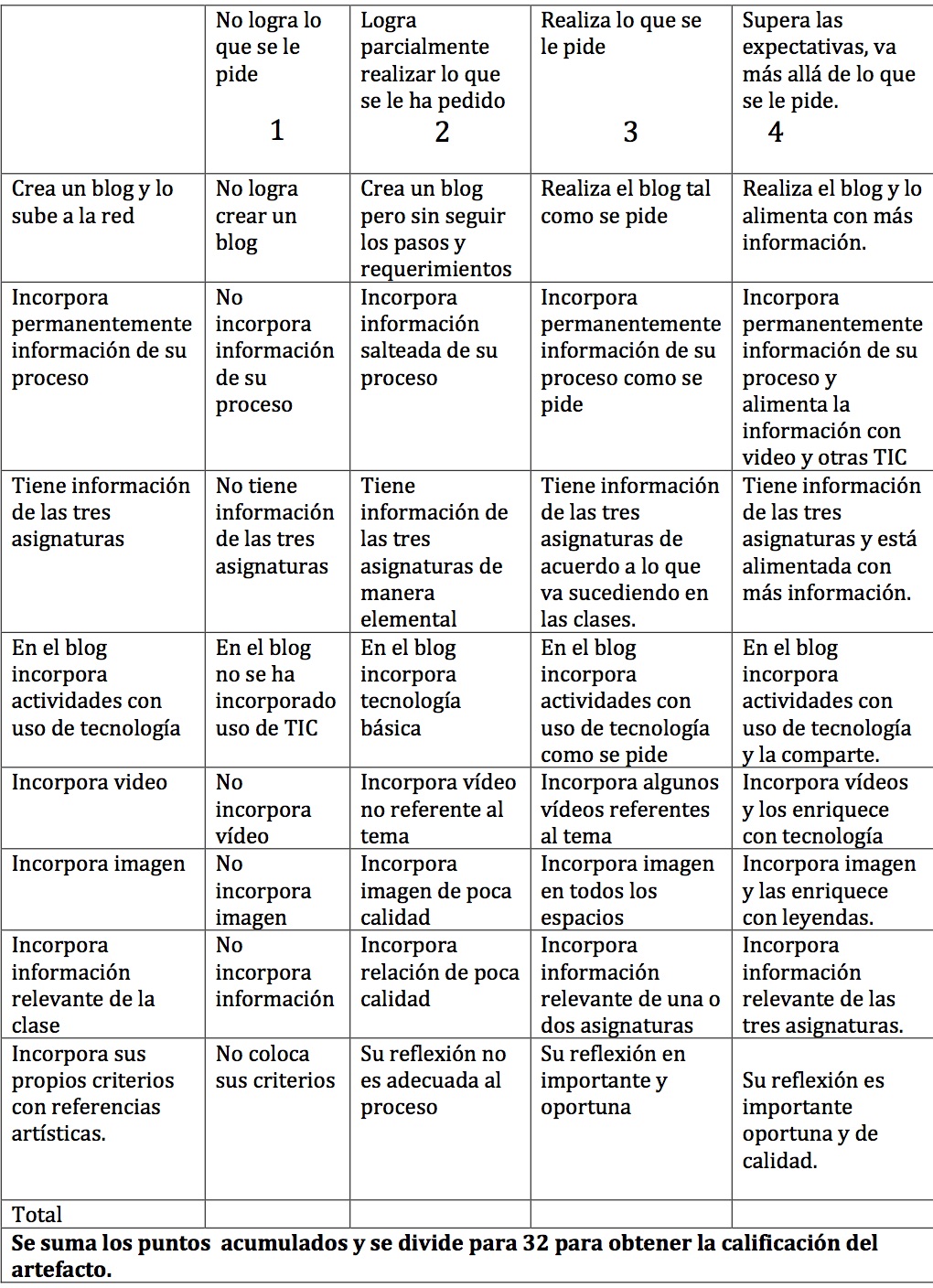 Con la creación del blog, los chicos y chicas, estarán permanentemente conectados al trabajo artístico, compartinedo sus aprendizajes y obras. Deberán alimentar el blog permanentemente no solo de proyectos terminados sino del paso a paso de los mismos.
