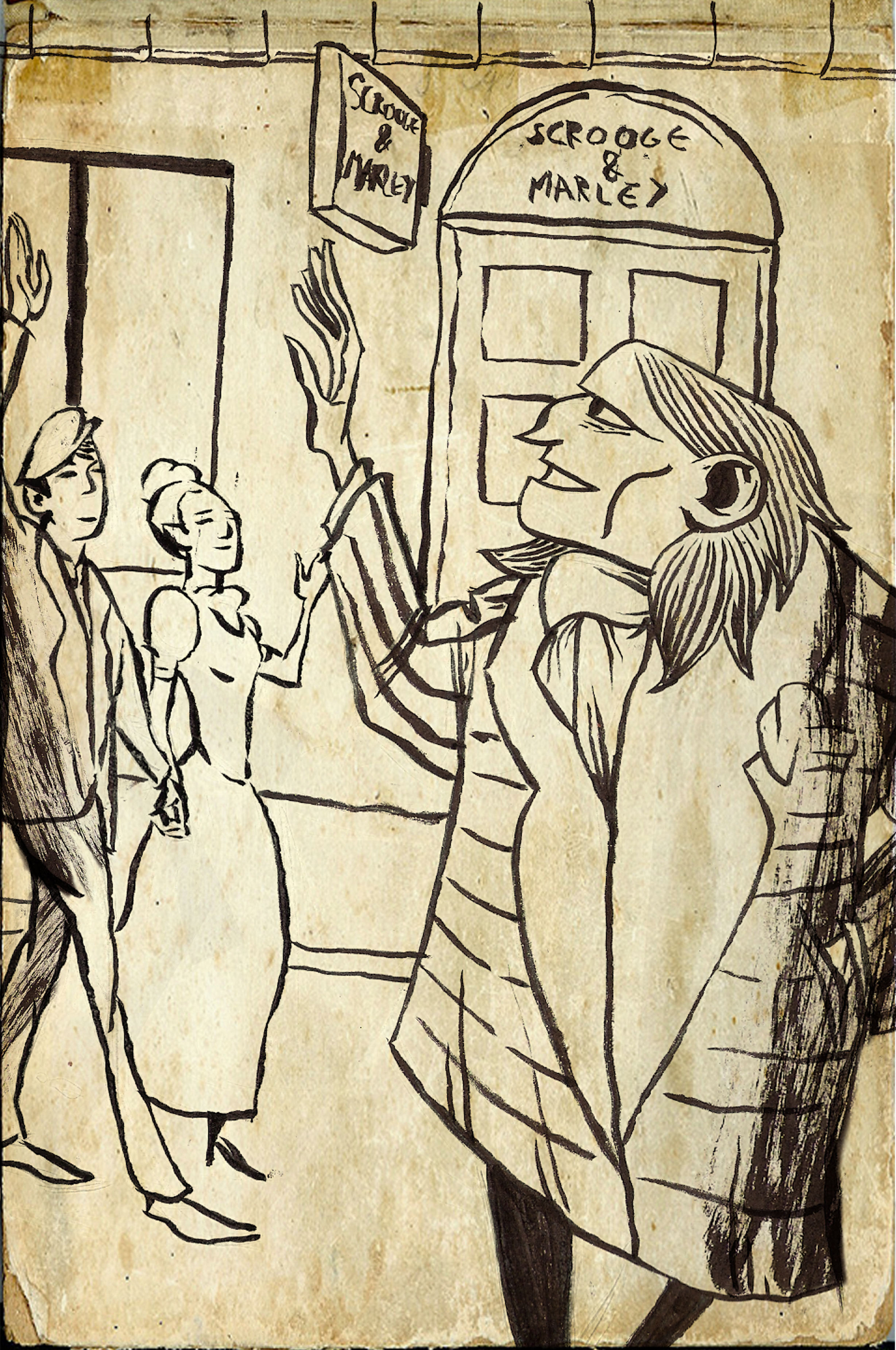Canción de Navidad: Scrooge, transformado, felicita las fiestas a la gente