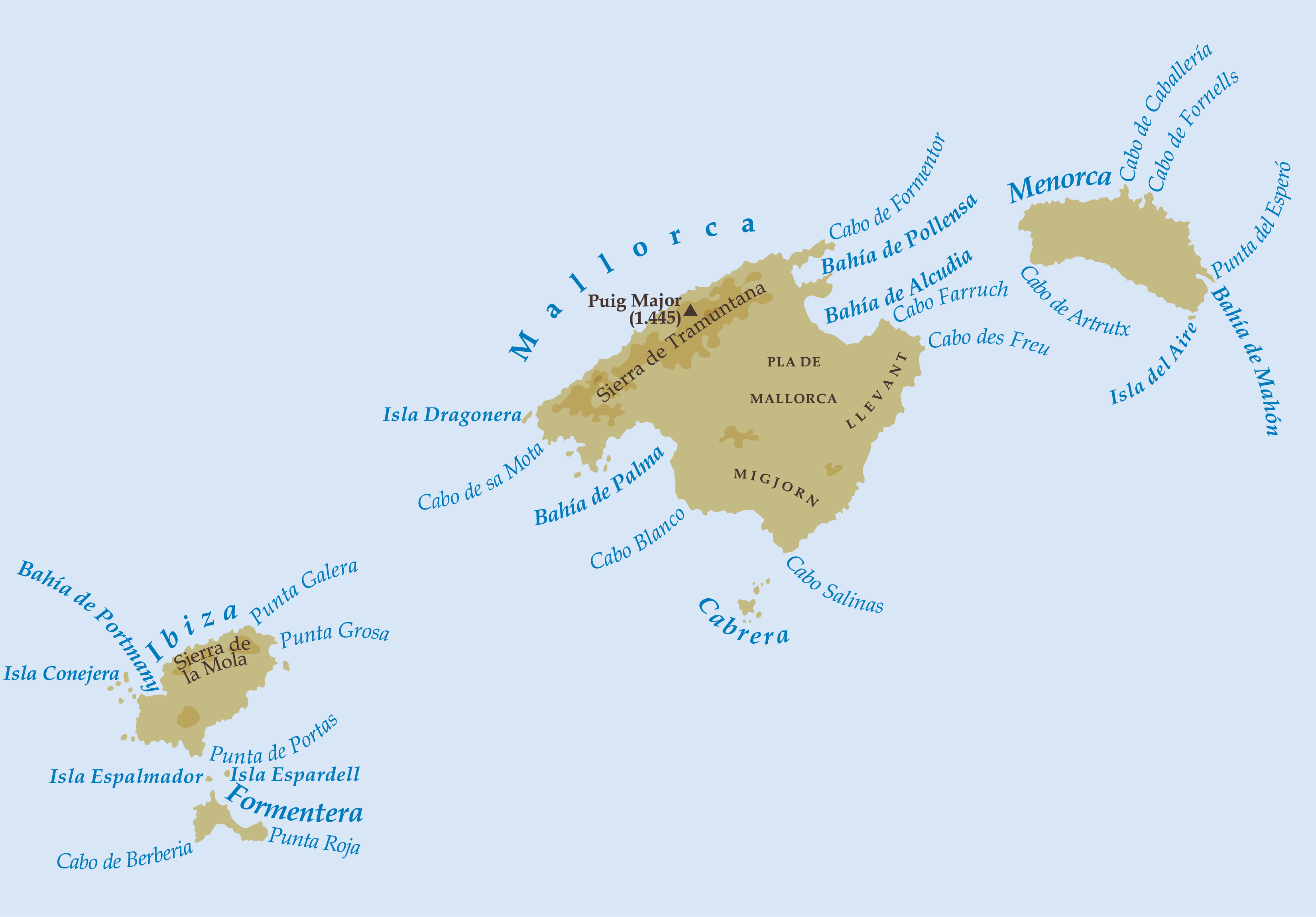 Mapa físico de Baleares