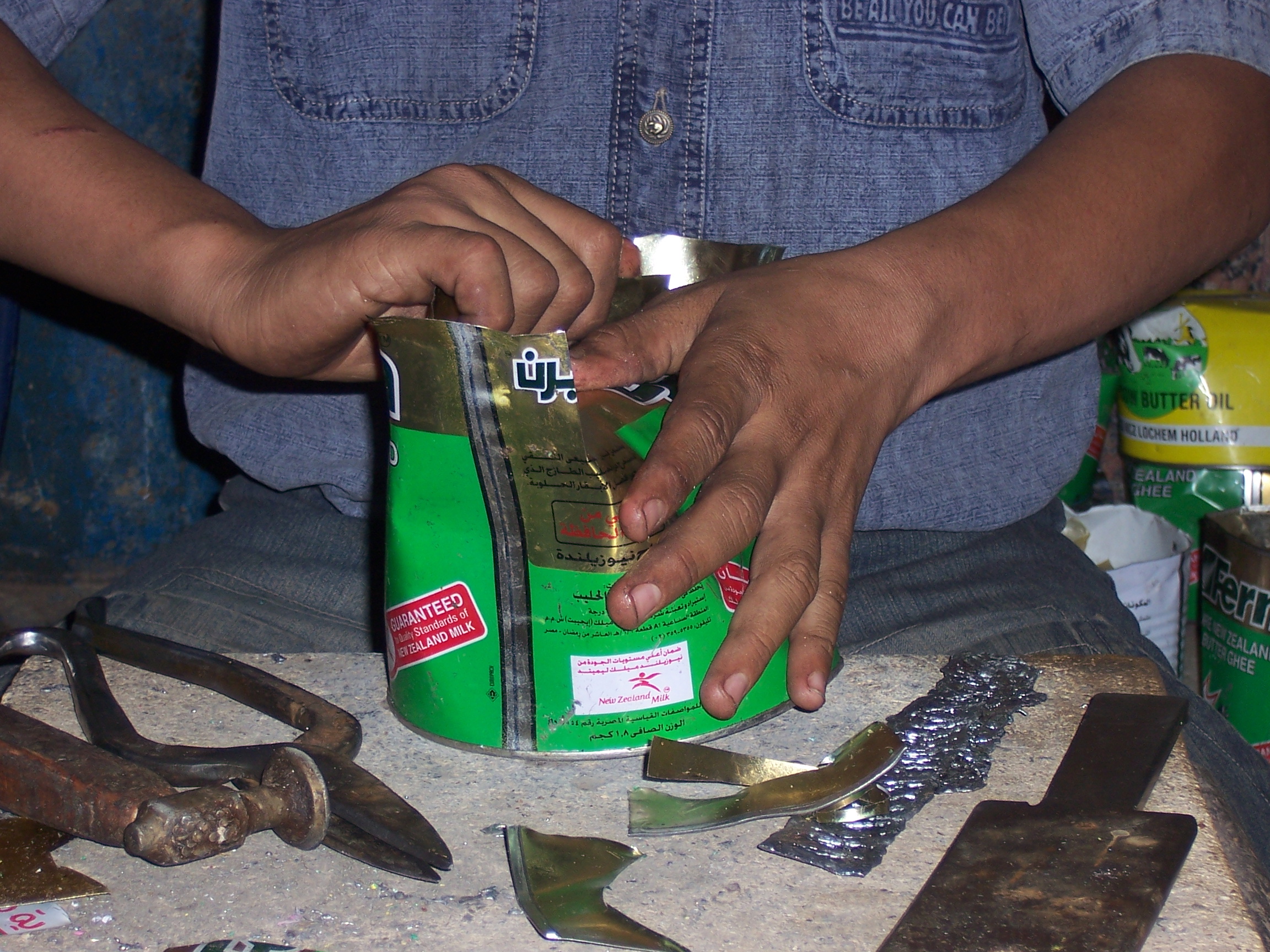 Trabajando con lata, Mercado de Asuán, Egipto