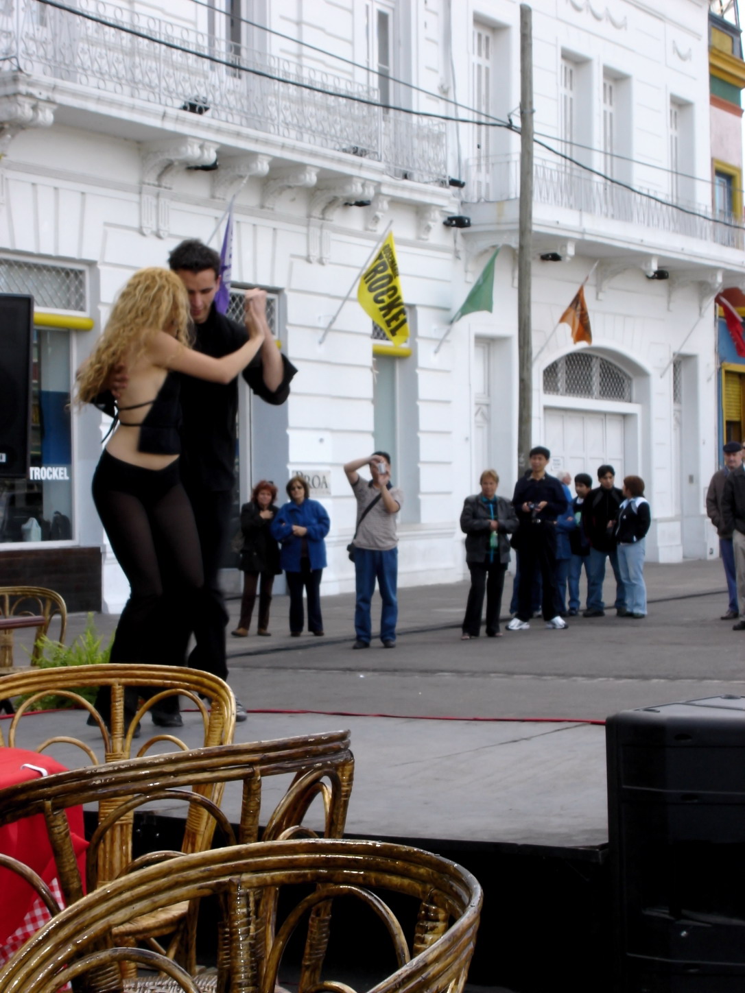 Pareja bailando el tango en el Barrio de la Boca, Buenos Aires, Argentina