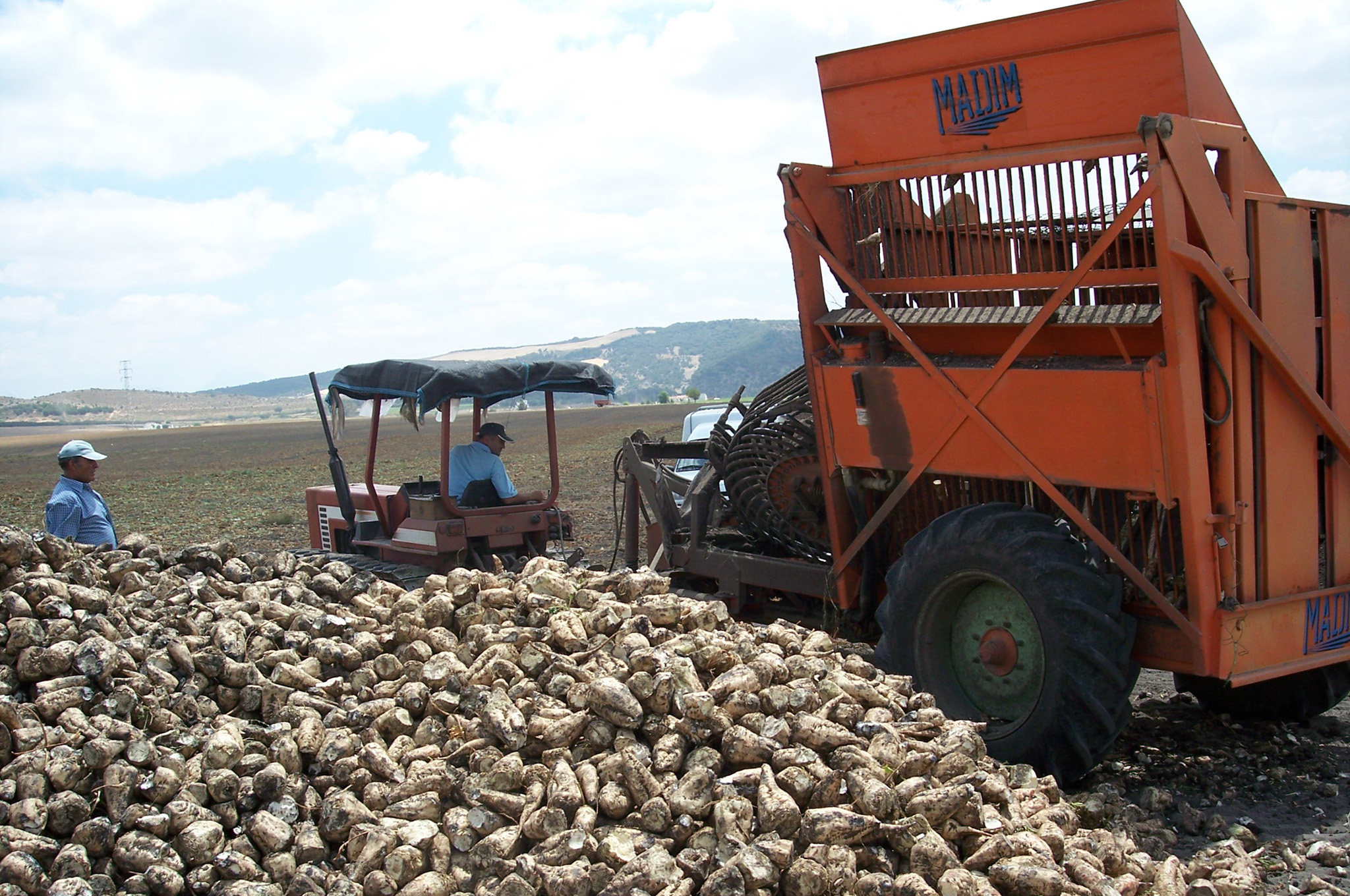 Cosechadora amontonando remolachas