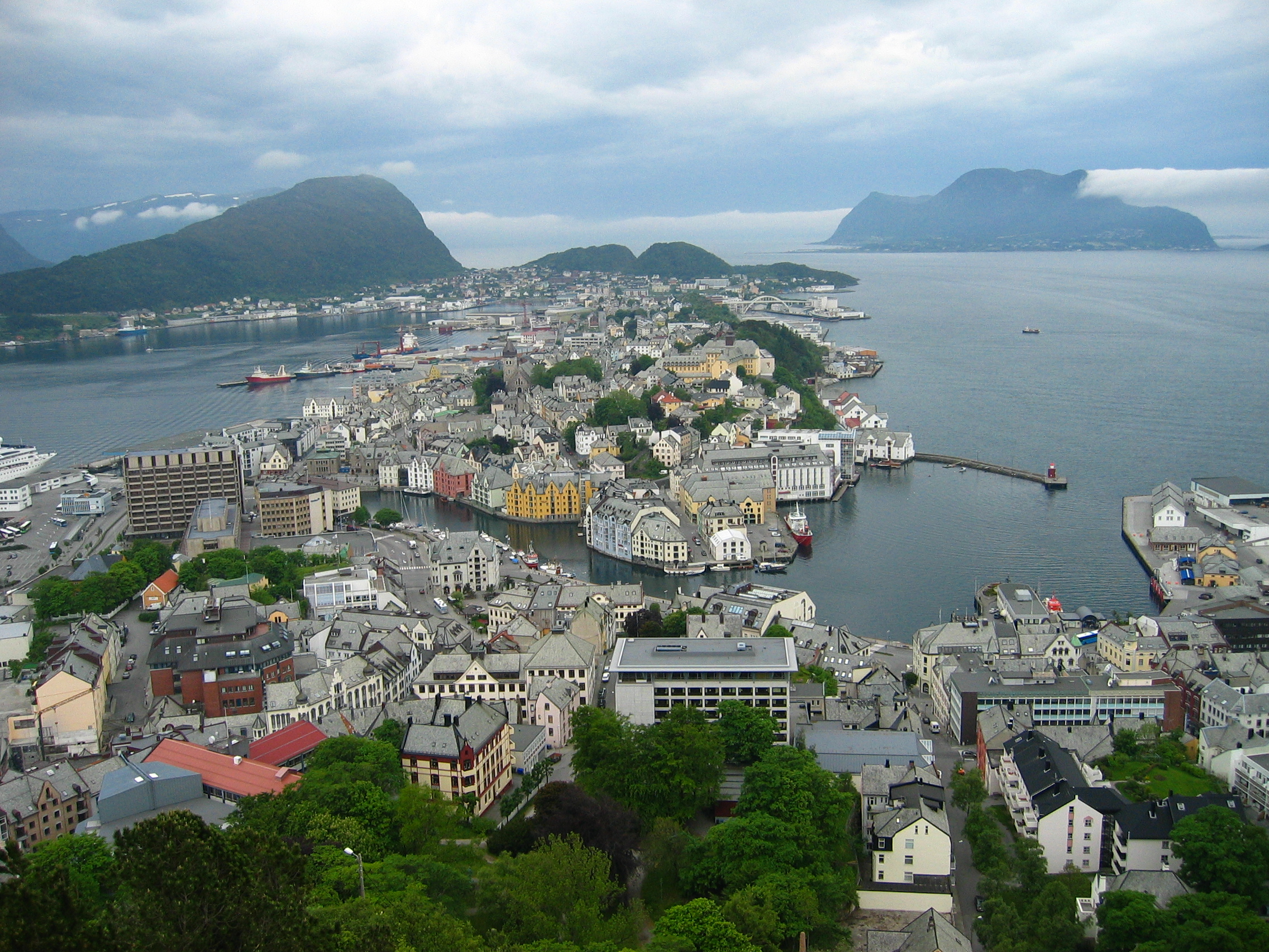Aalesund, vista desde el monte Fjellstua, Noruega