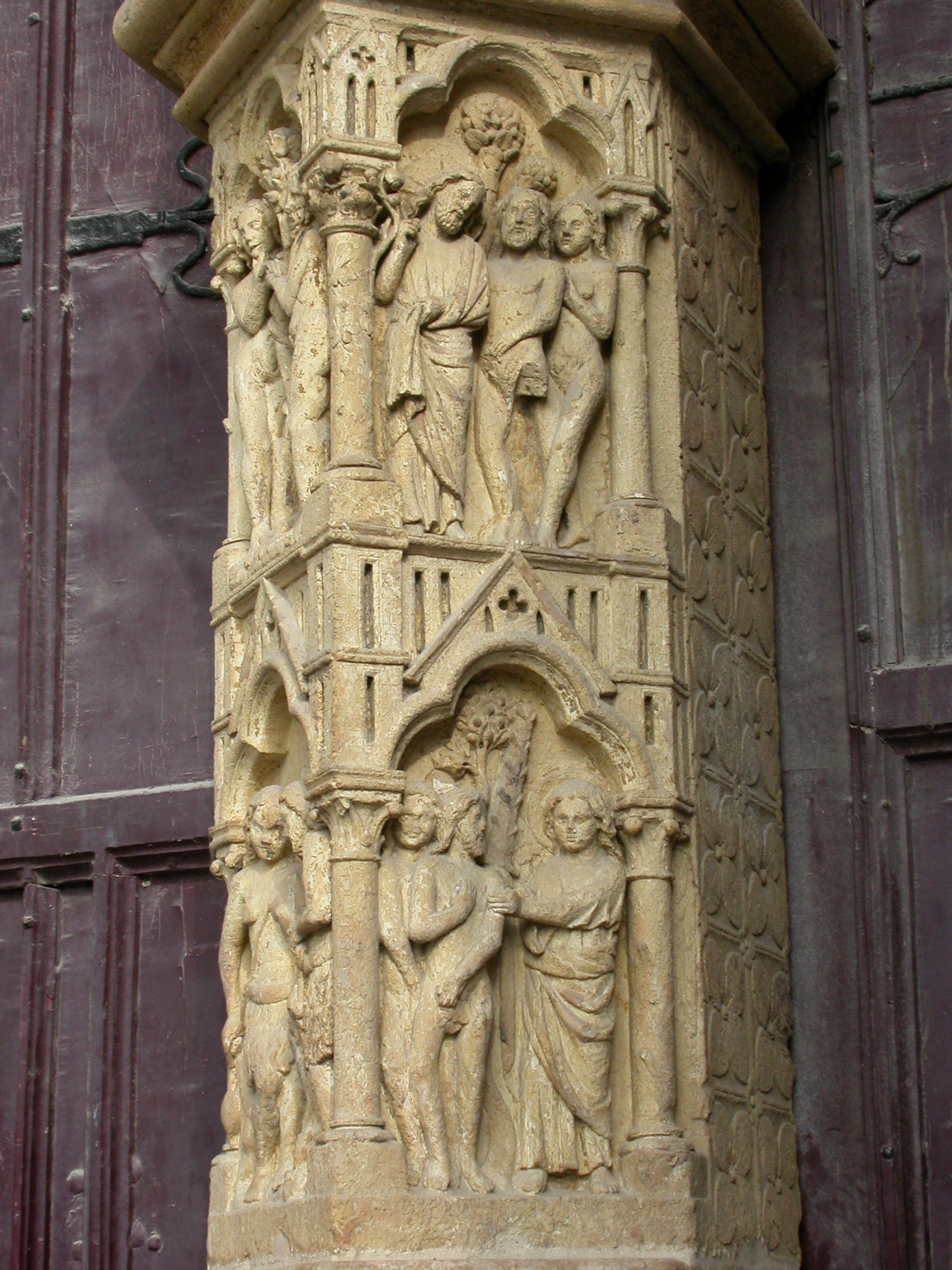 Parte inferior del parteluz del portal de la Madre de Dios de la Catedral de Amiens, Francia