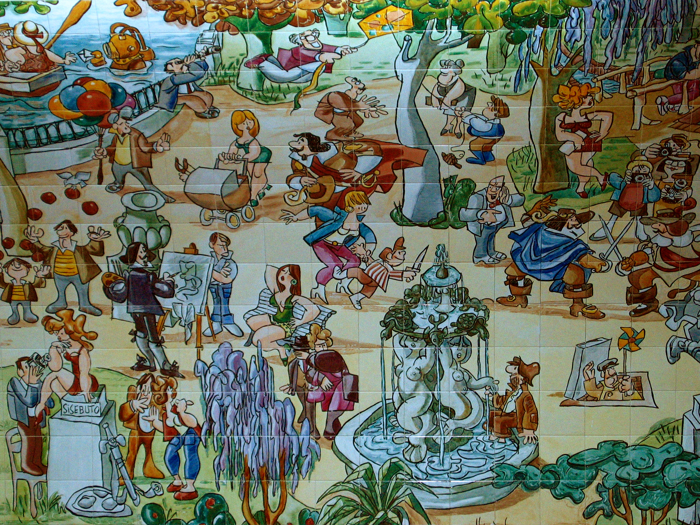 Obra de Mingote en la estación de metro Retiro, Madrid