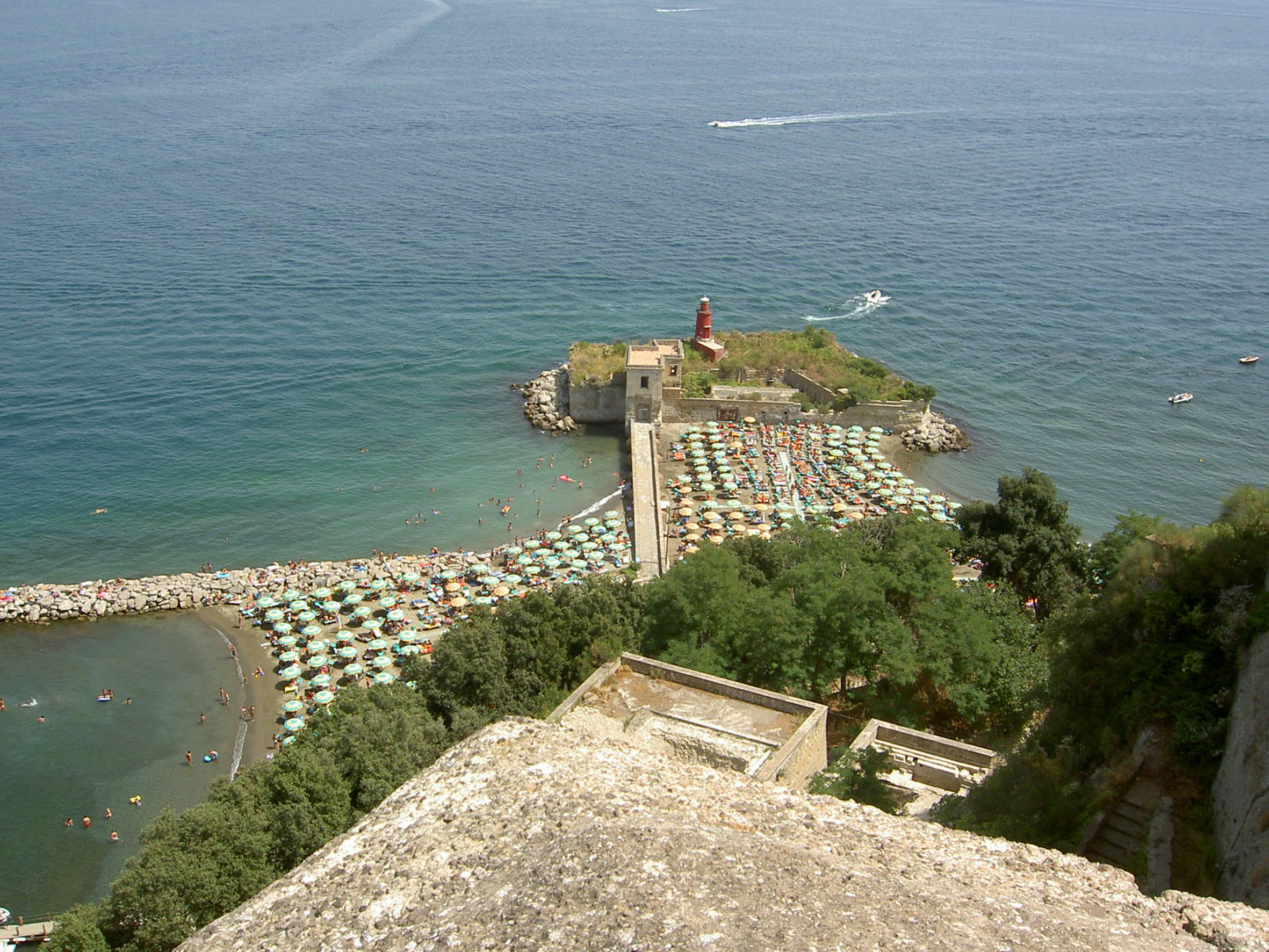 Vistas de la playa del Castillo de Baia, situada en el municipio italiano Bacoli (Nápoles, Italia).