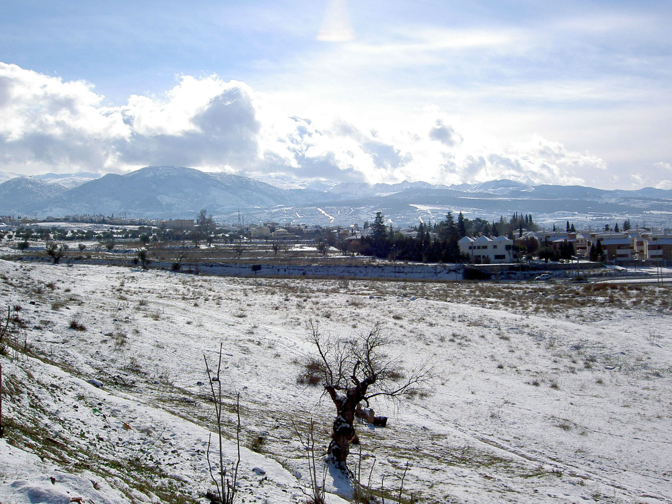 Vistas del municipio de Huétor Vega (Granda) con nieve.