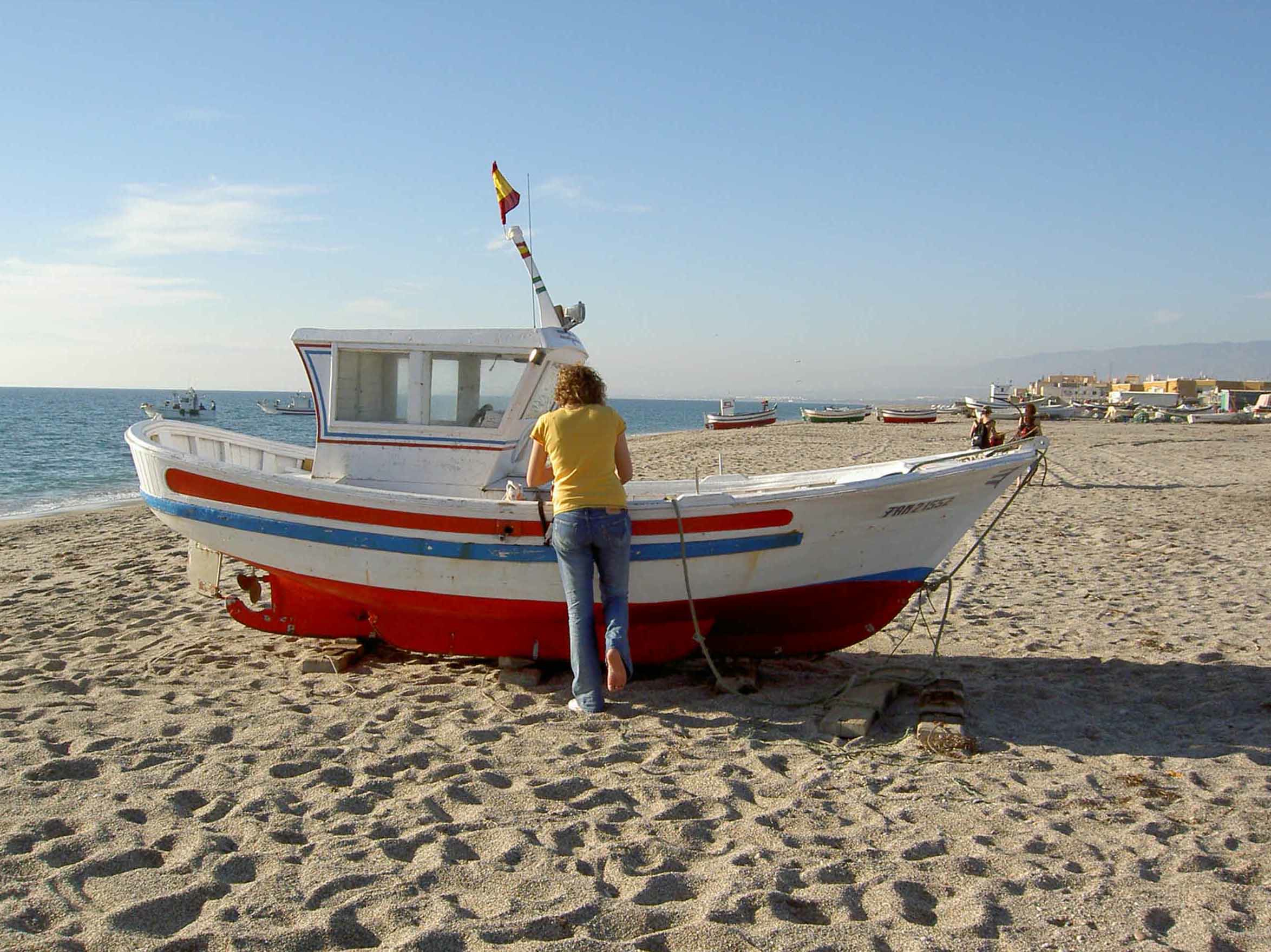 Barcos de pesca en la arena de una playa de Cabo de Gata (Almería)