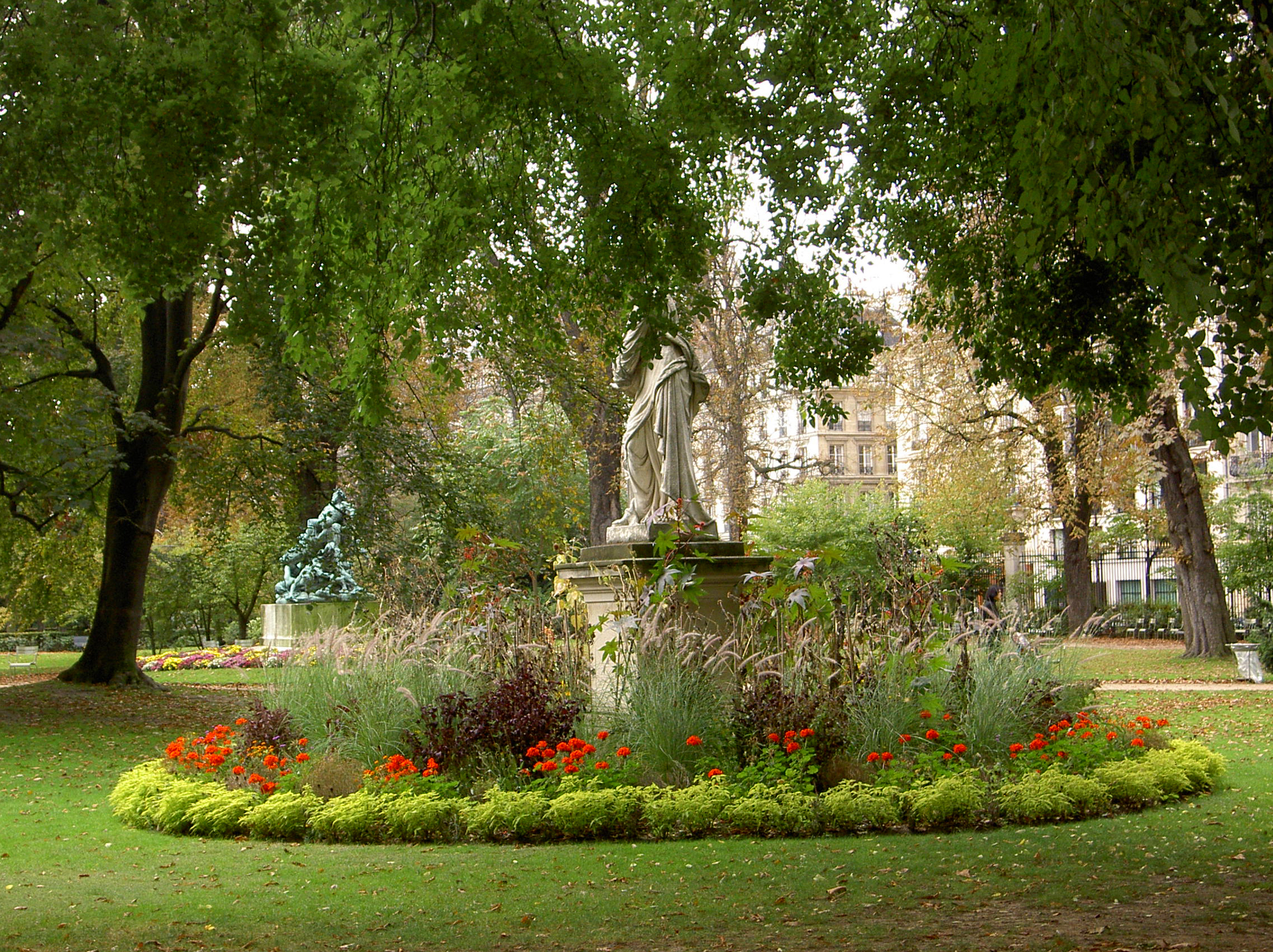 Vista de una estatua en los Jardines de Luxemburgo de París, Francia.