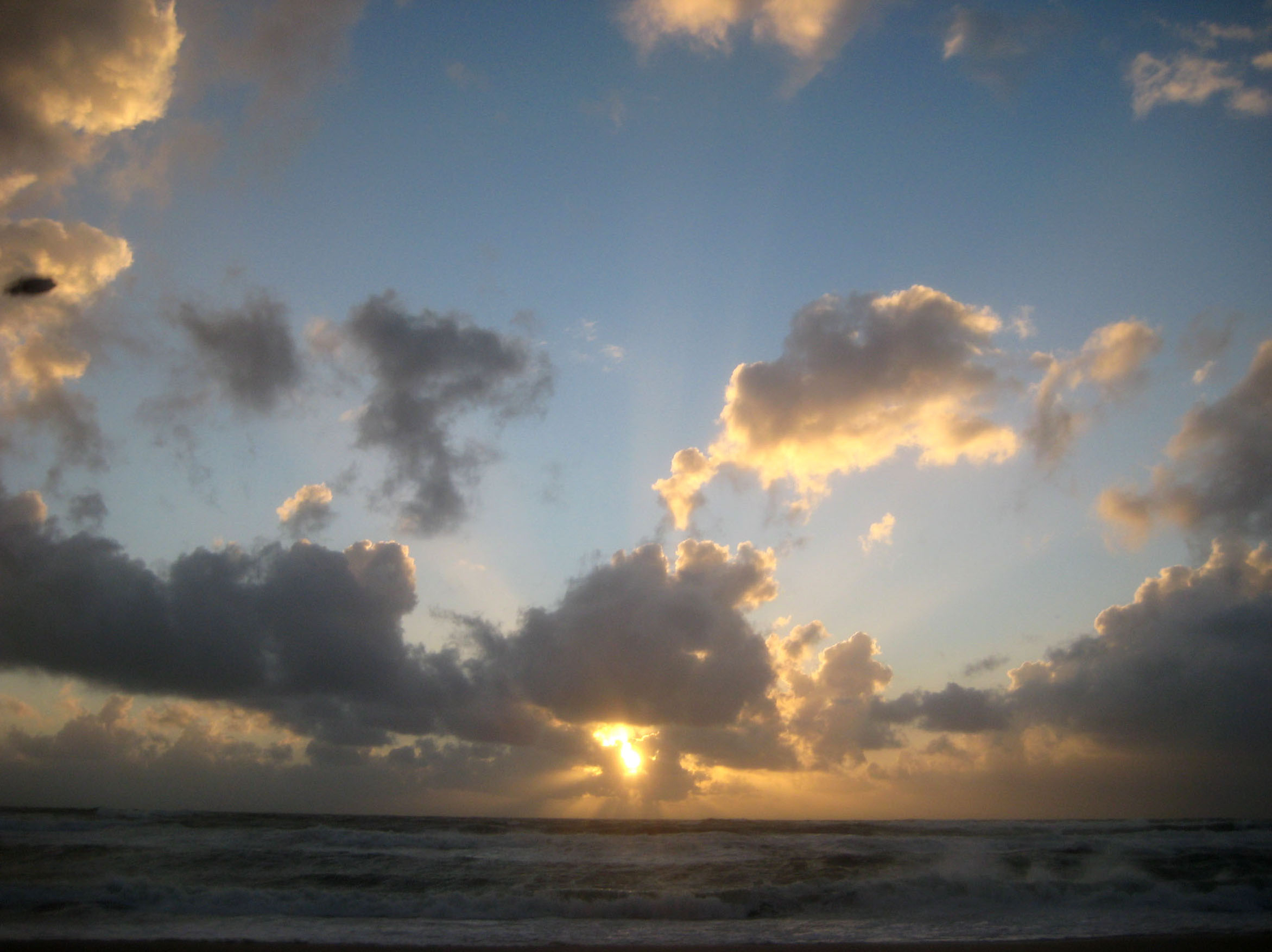 Puesta de sol en la playa del cabo Ferret de la costa atlántica de Francia.