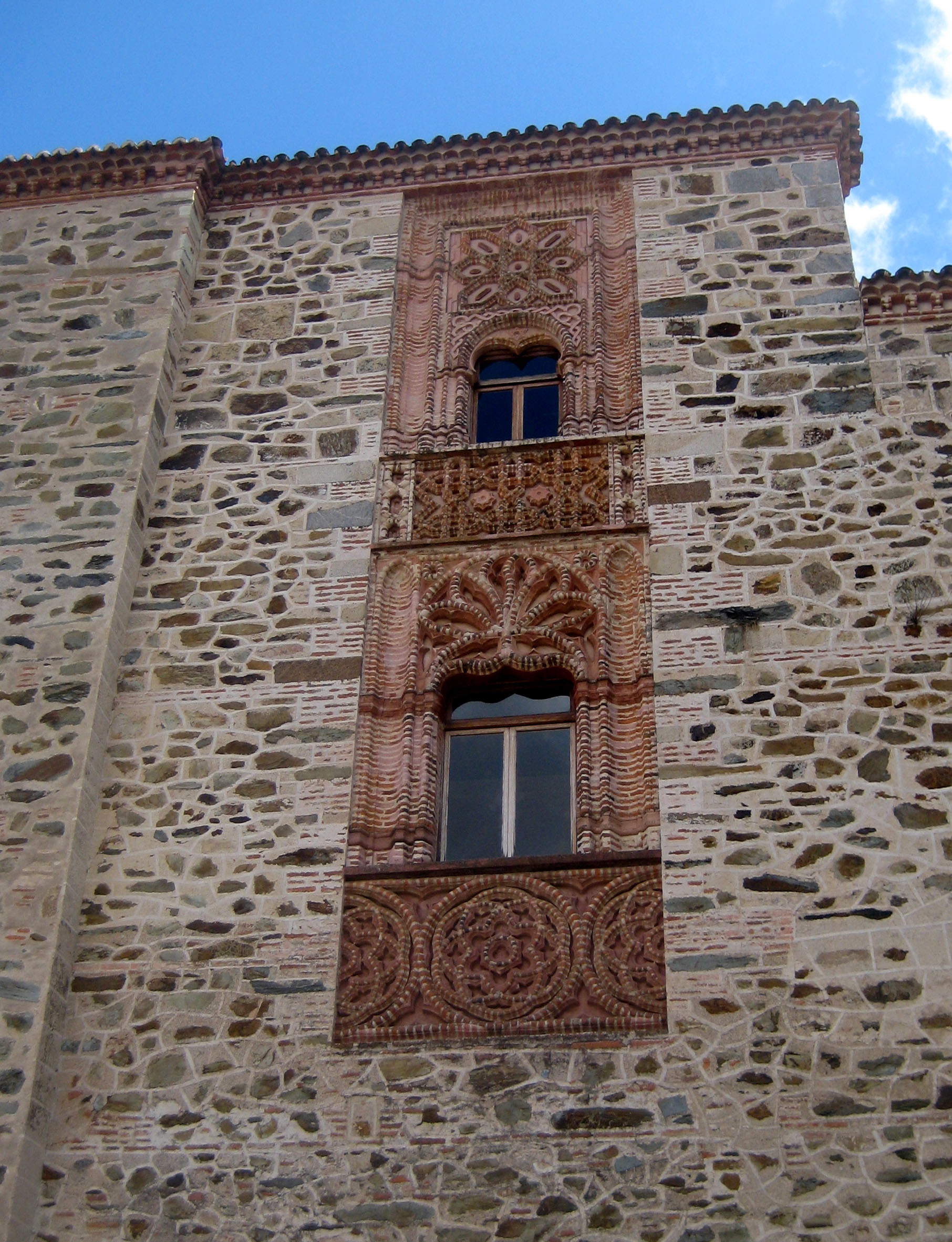 Detalle de la fachada del Hotel Hospedería Monasterio de Guadalupe en Cáceres.