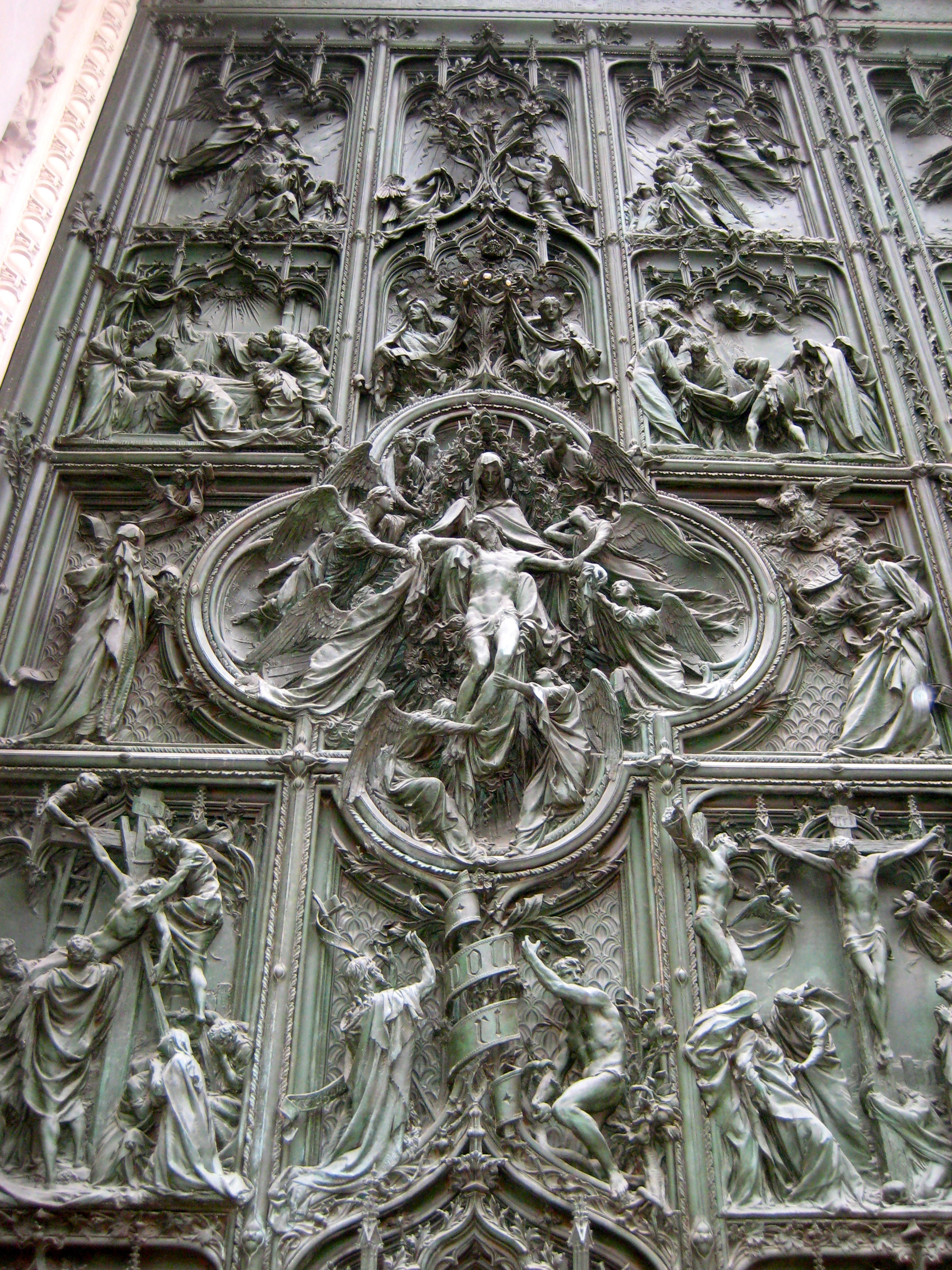 Plano detalle de las puertas de la Catedral de Milán o Duomo di Milán.