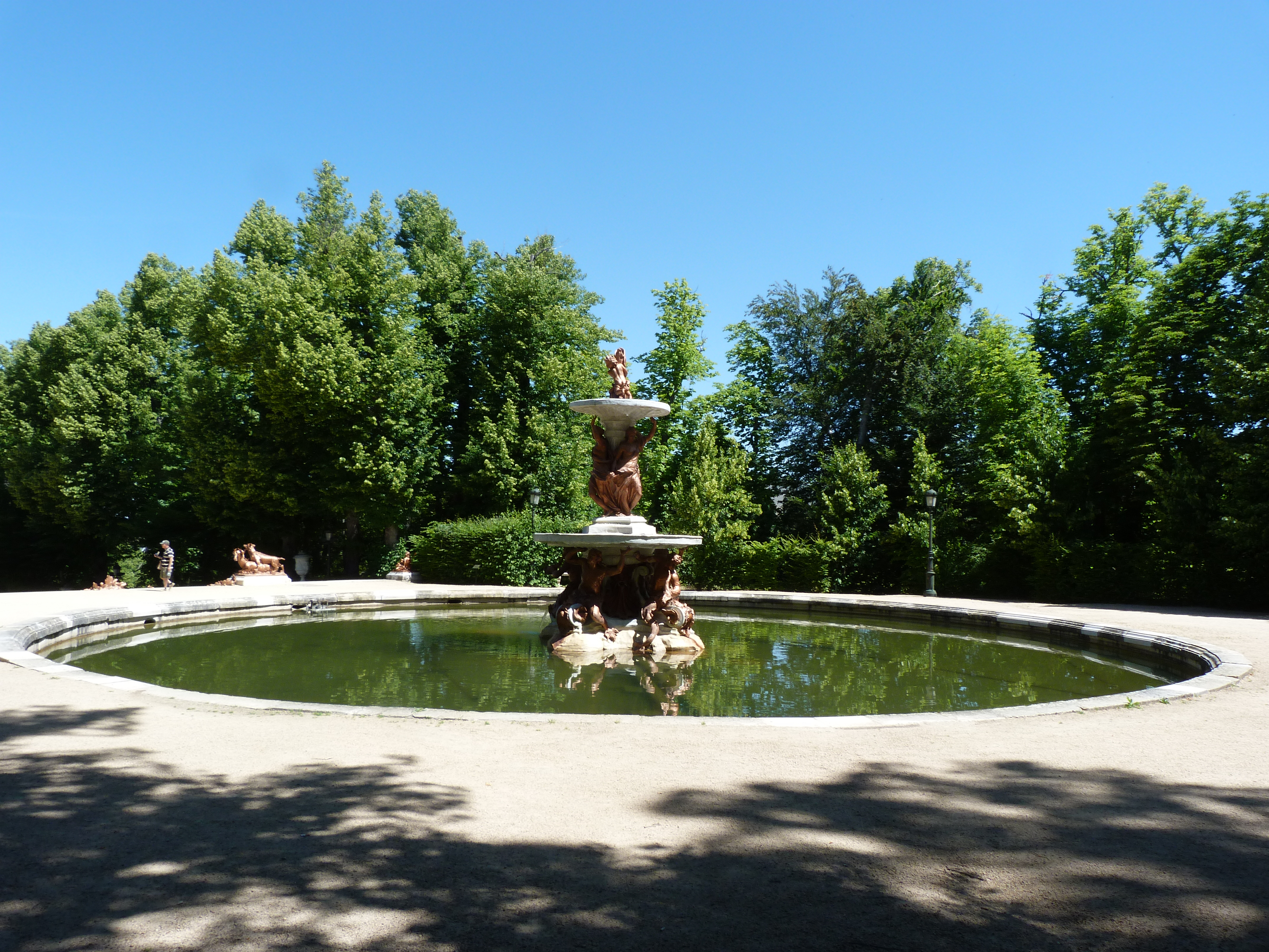 Las fuentes están inspiradas en la mitología clásica, incluyendo deidades, alegorías y escenas mitológicas. Se construyeron en plomo para prevenir la corrosión, aunque pintadas a imitación de bronce para ennoblecerlas, al igual que en Versalles.