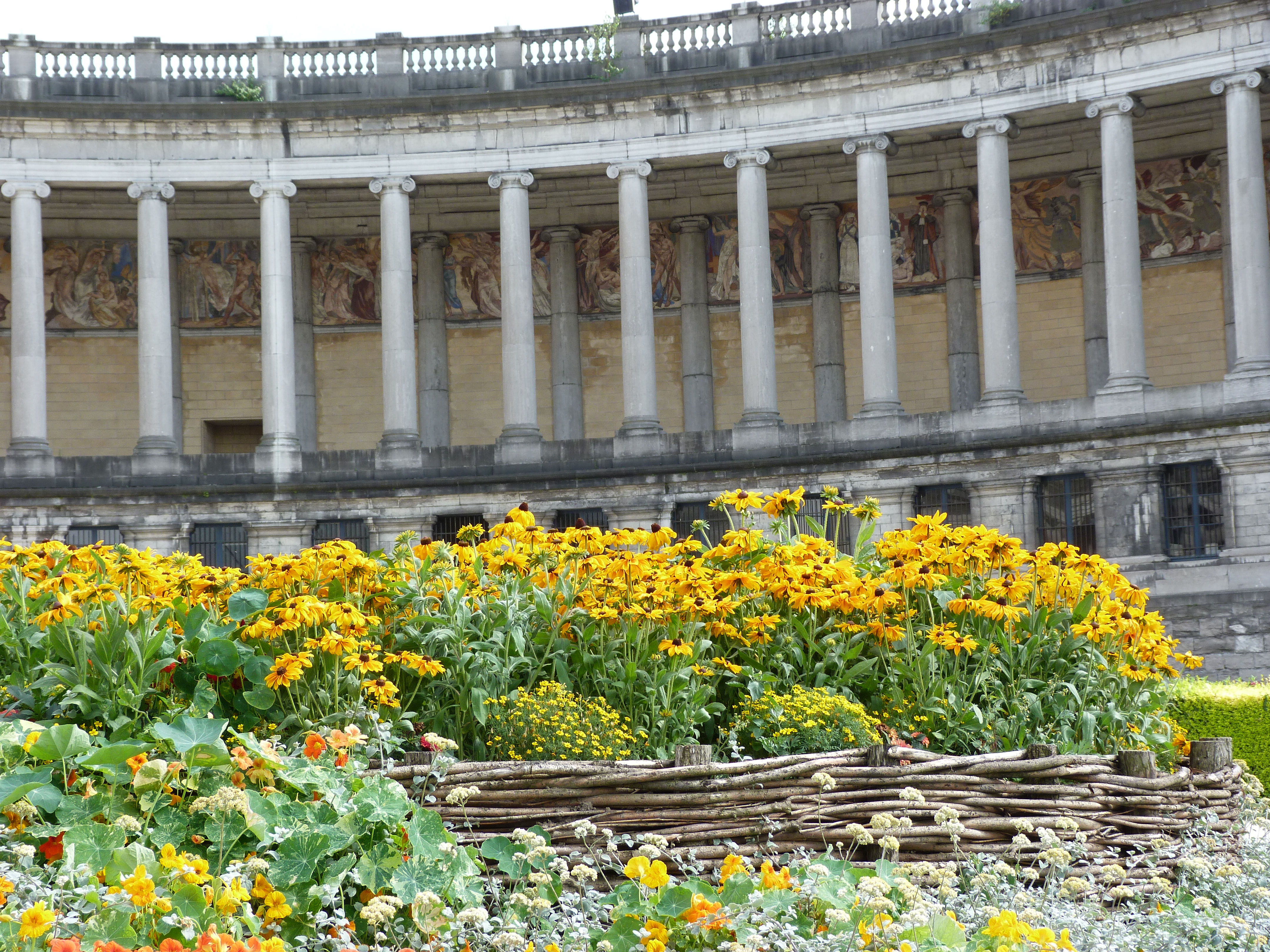 La mayoría de los edificios del complejo en forma de U que dominan el parque fueron comisionados por el gobierno belga en el marco del patrocinio del rey Leopoldo II por la Exposición Nacional de 1880 que conmemoraba el quincuagésimo aniversario de la independencia de Bélgica, y de sucesivas exposiciones que estuvieron en la misma zona, sustituyendo anteriores construcciones. El actual arco de triunfo fue erigido en 1905 reemplazando una versión temporal anterior de Gédéon Bordiau. Las estructuras fueron construidas en hierro, vidrio y piedra, que simbolizan el rendimiento económico e industrial de Bélgica.