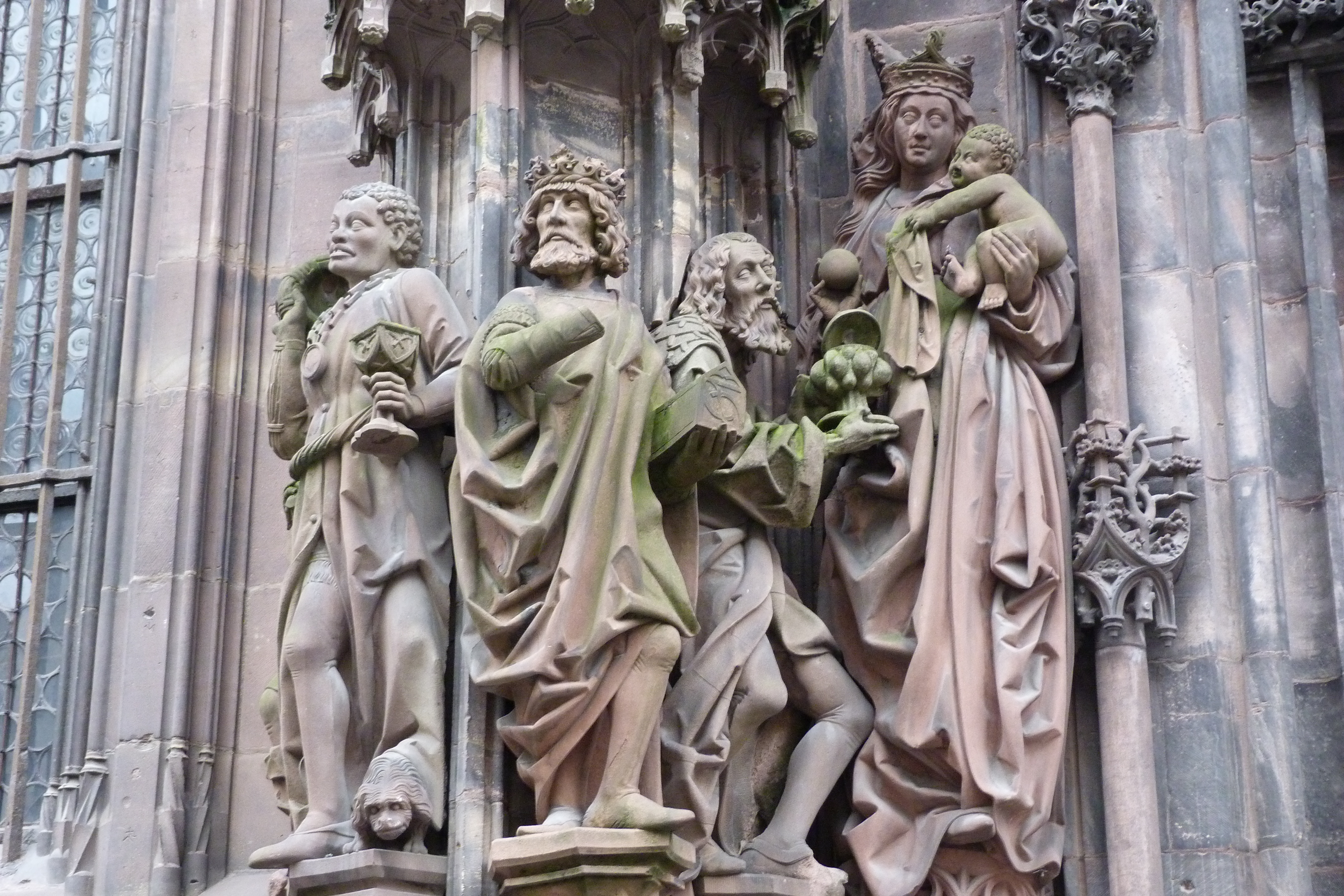 Esculturas de los Reyes Magos en la catedral de Estrasburgo