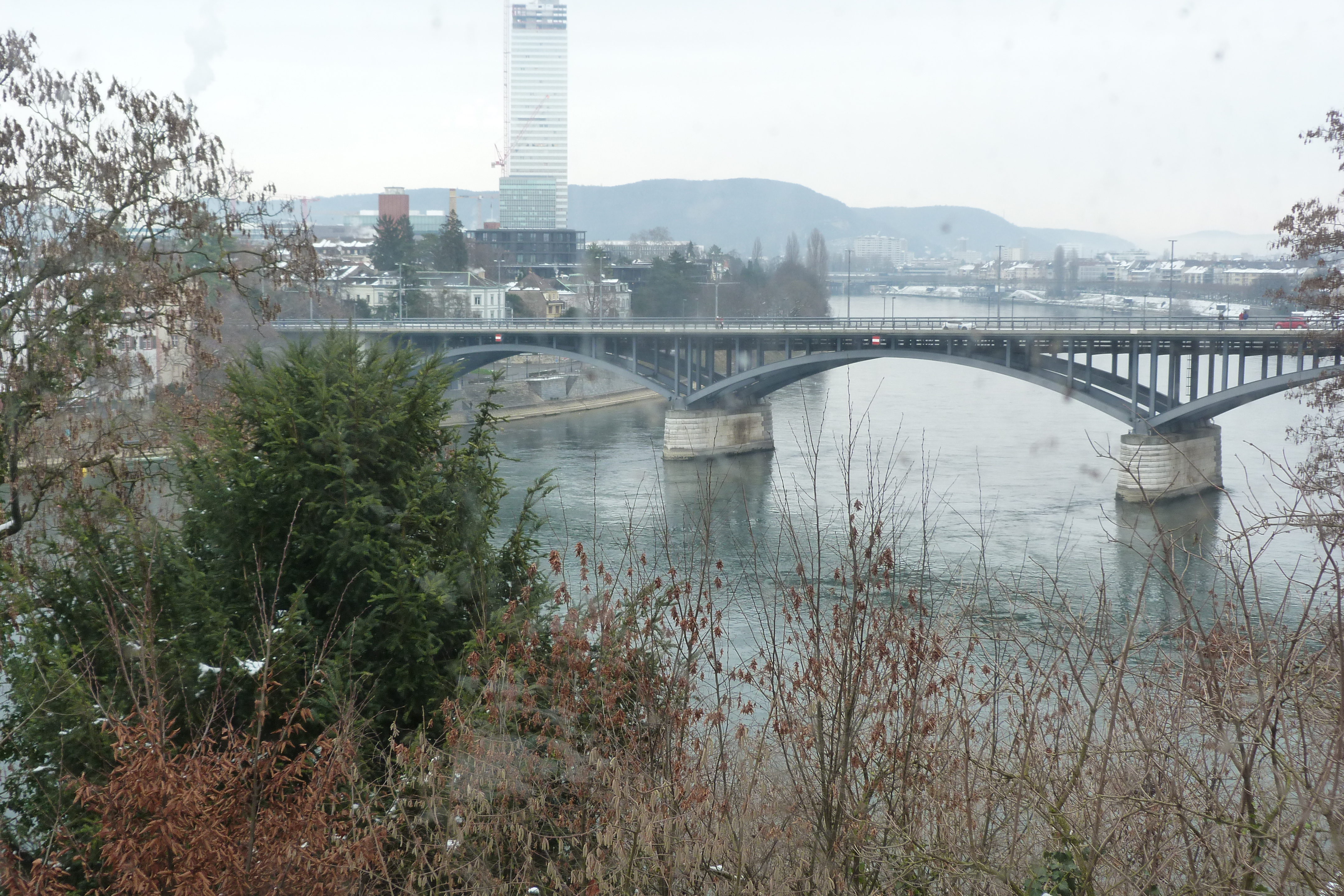El río Rin a su paso por Basilea, Suiza y un puente que lo cruza