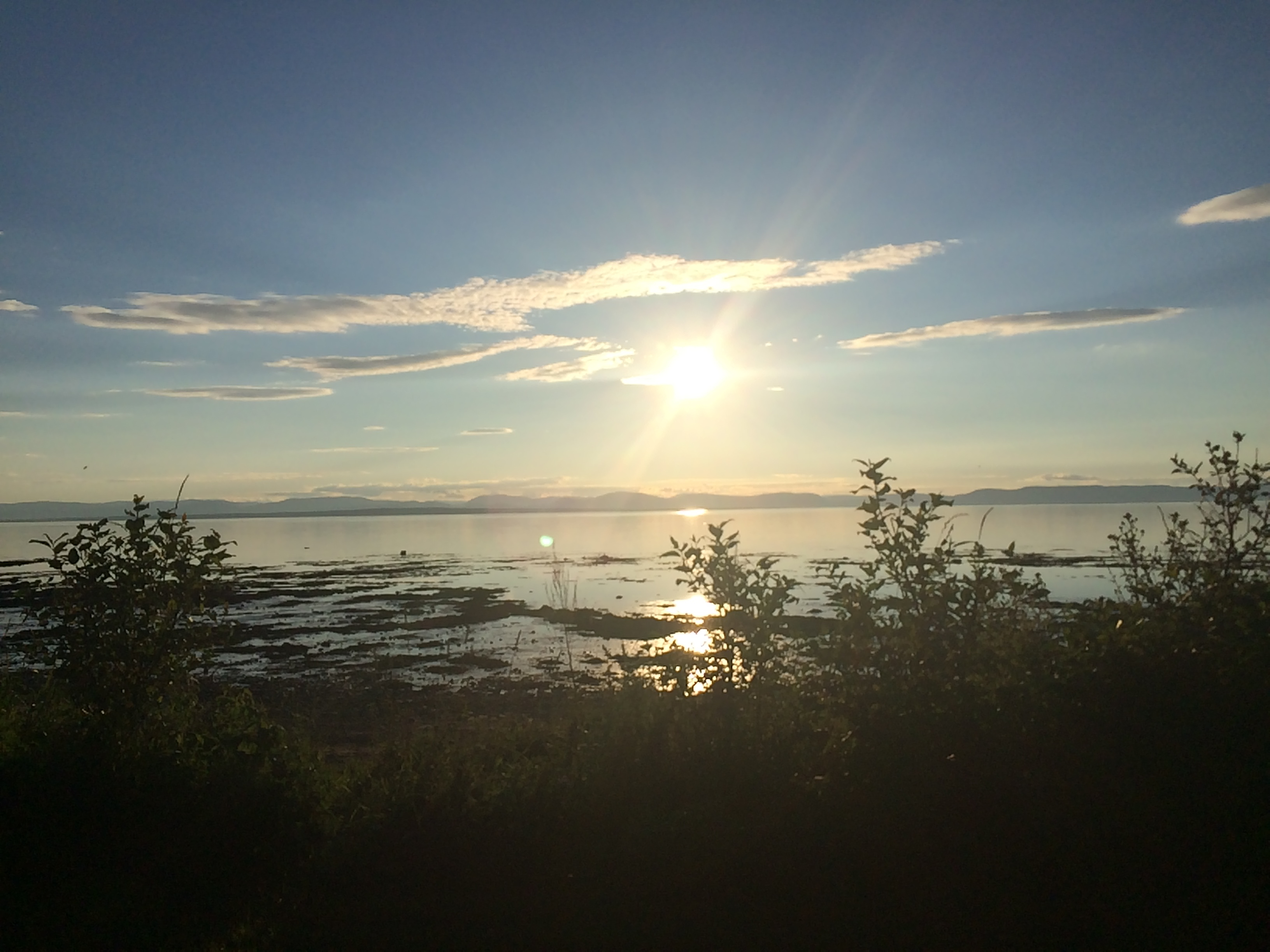 Atardecer en el río de San Lorenzo a su paso por la ciudad de Kamouraska, Quebec. Es uno de los principales ríos de Norteamérica, el colector de los Grandes Lagos que conecta con el océano Atlántico, en el golfo de San Lorenzo. En su primer tramo forma la frontera natural entre Estados Unidos y Canadá, bordeando el oeste de la provincia de Ontario, y luego se adentra en Quebec atravesándolo totalmente. Pertenece al sistema lacustre de Lawrence.