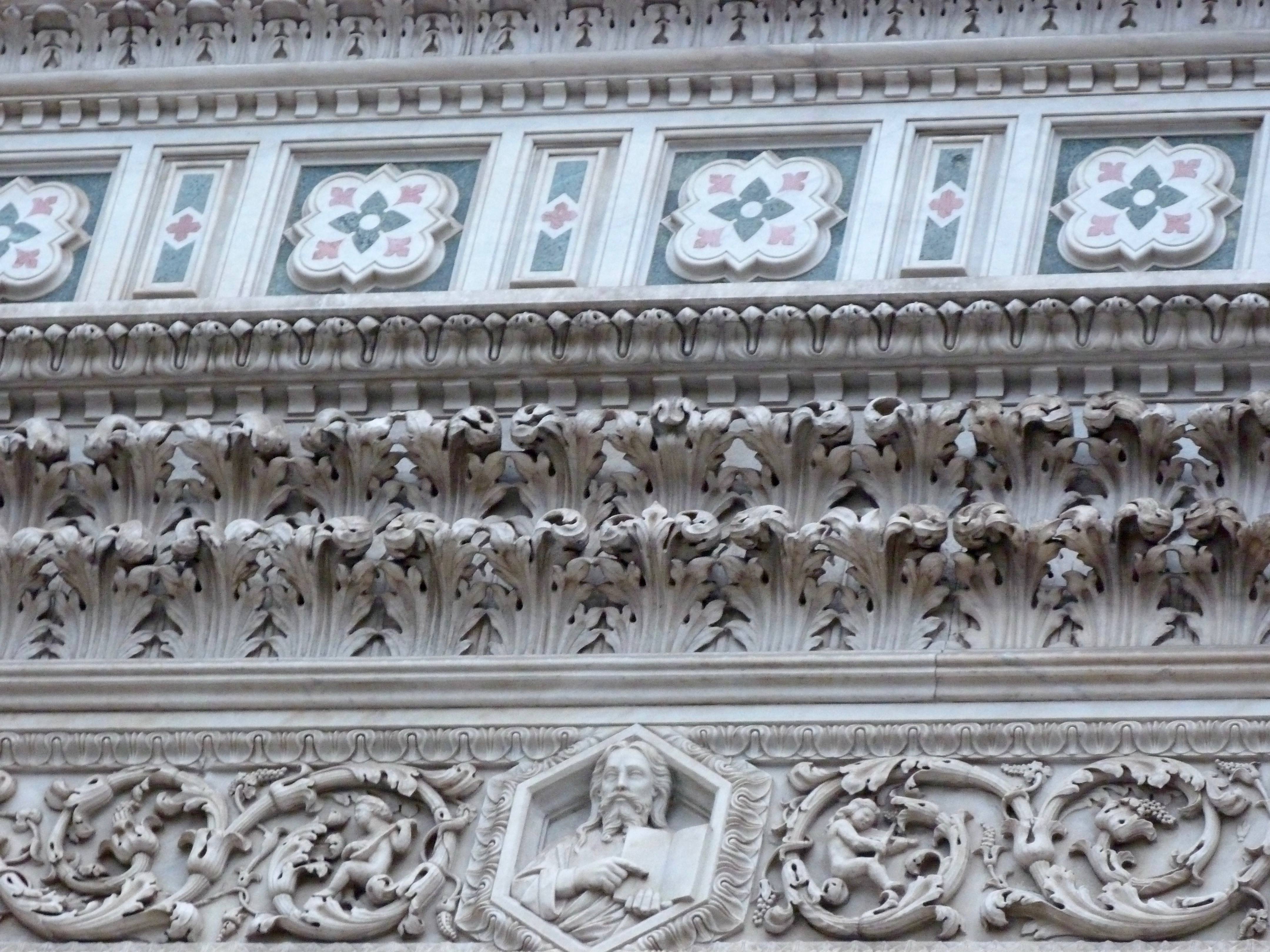 Detalles de la fachada de la Catedral de Santa Maria del Fiore en Florencia.