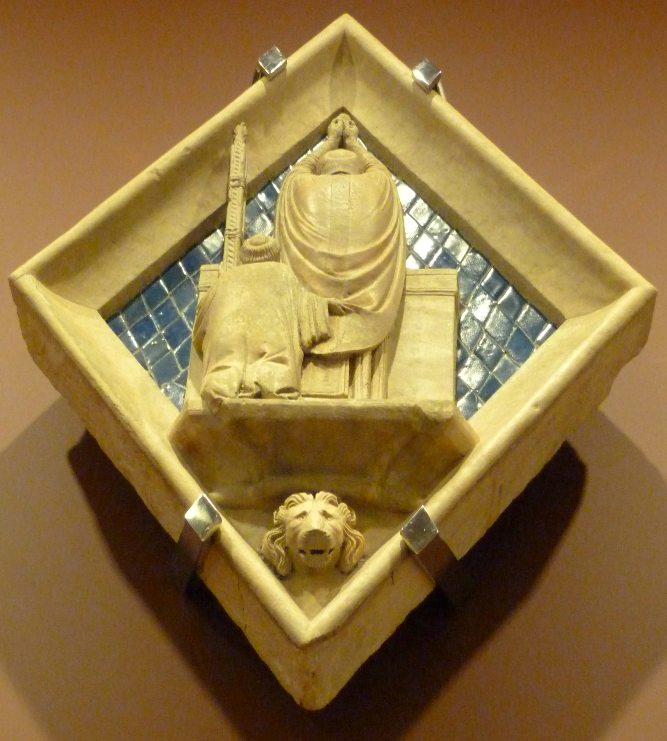 Relieve de religioso sujetando la túnica al sacerdote durante la misa