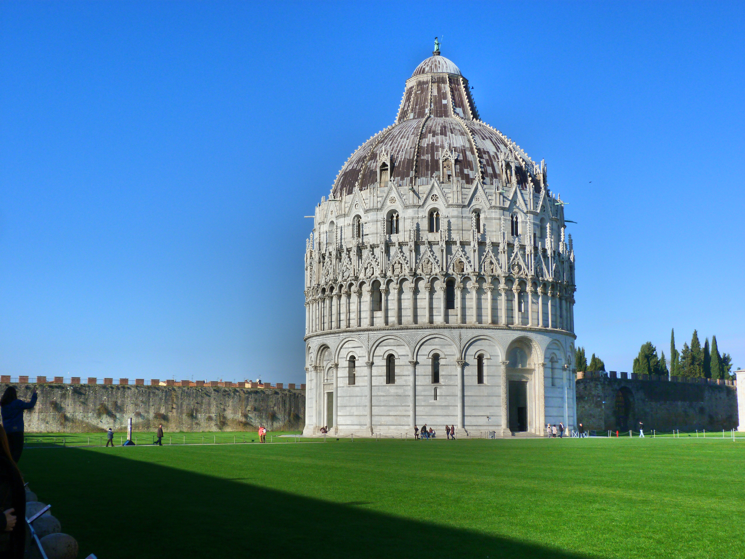 El Baptisterio de Pisa, dedicado a San Juan el Bautista, está frente a la catedral en el extremo occidental de la Piazza dei Miracoli. Comenzó a construirse en el año 1152, y fue concluido en el 1363.