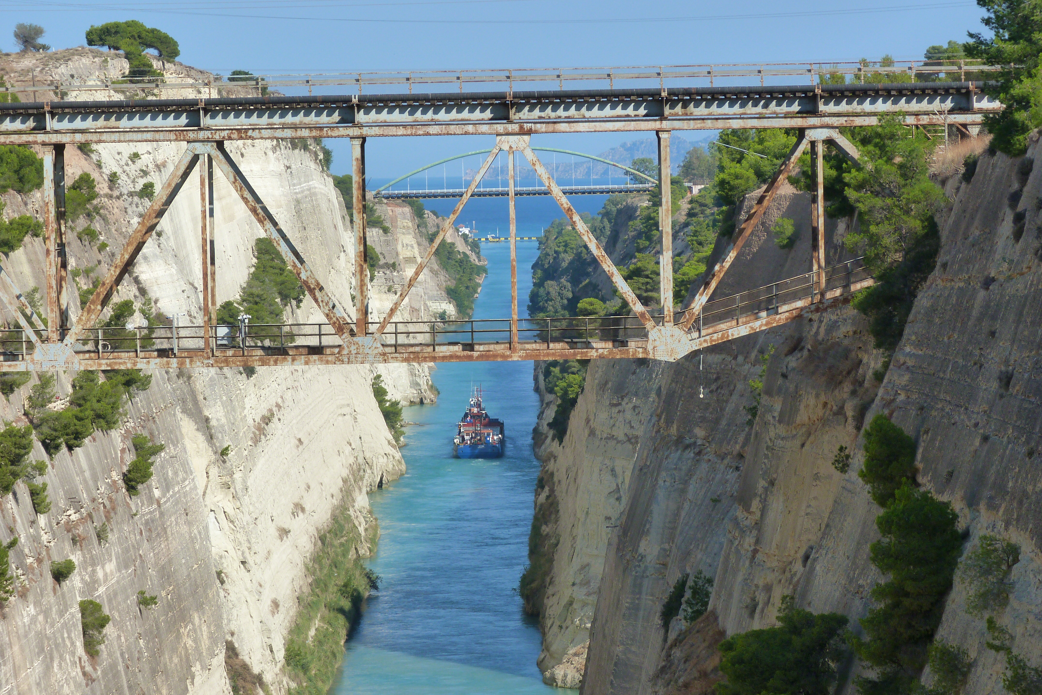 El canal de Corinto es una vía de agua artificial que une el golfo de Corinto con el mar Egeo por el istmo de Corinto, abriendo esta vía al transporte marítimo y separando el Peloponeso del resto de Grecia.