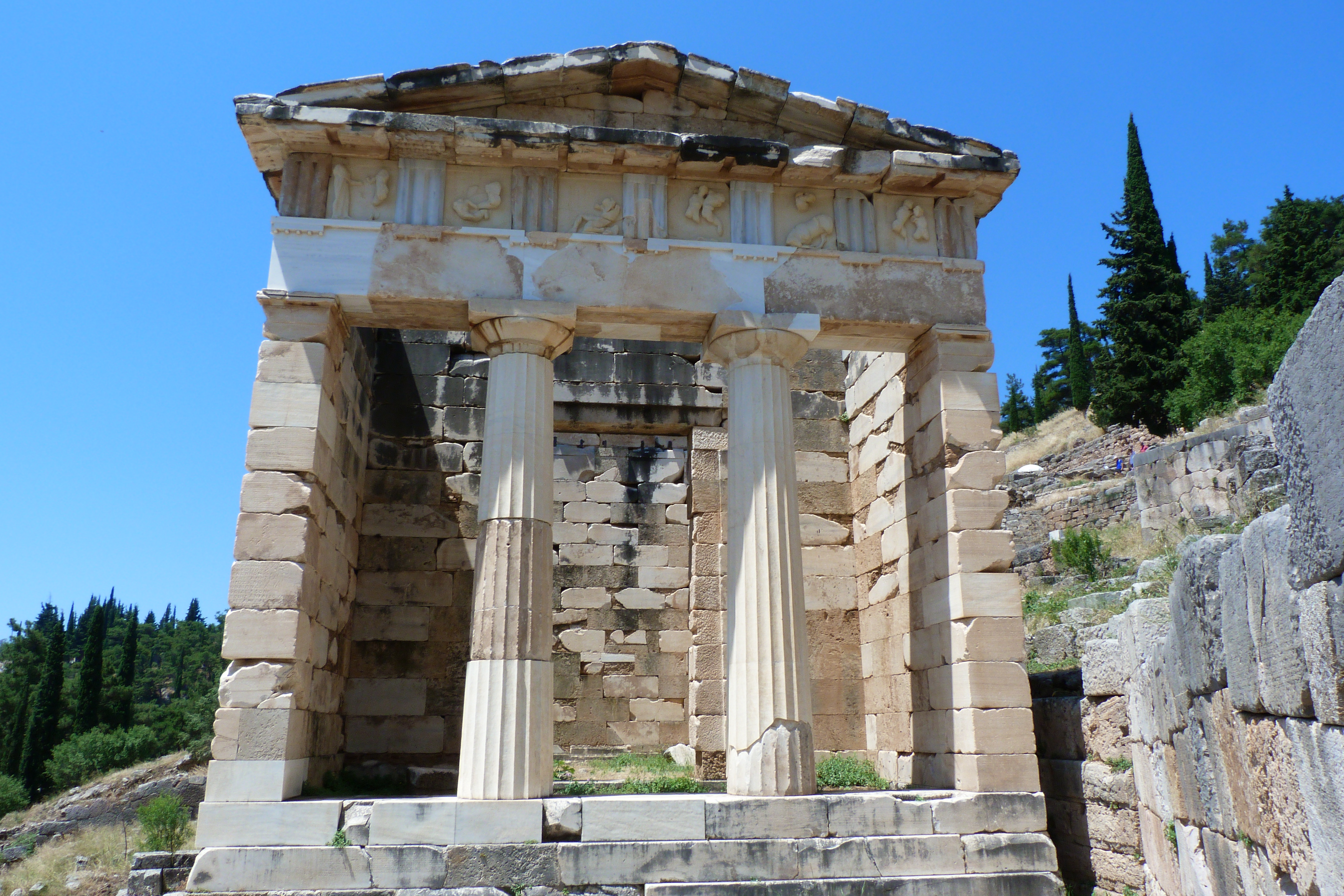 Este tesoro fue ofrecido por Atenas a la ciudad de Delfos. Fue el primero que apareció en las excavaciones de esta ciudad en 1893. Entre 1903 y 1906 se procedió a su reconstrucción por cuenta del consejo municipal de la capital.