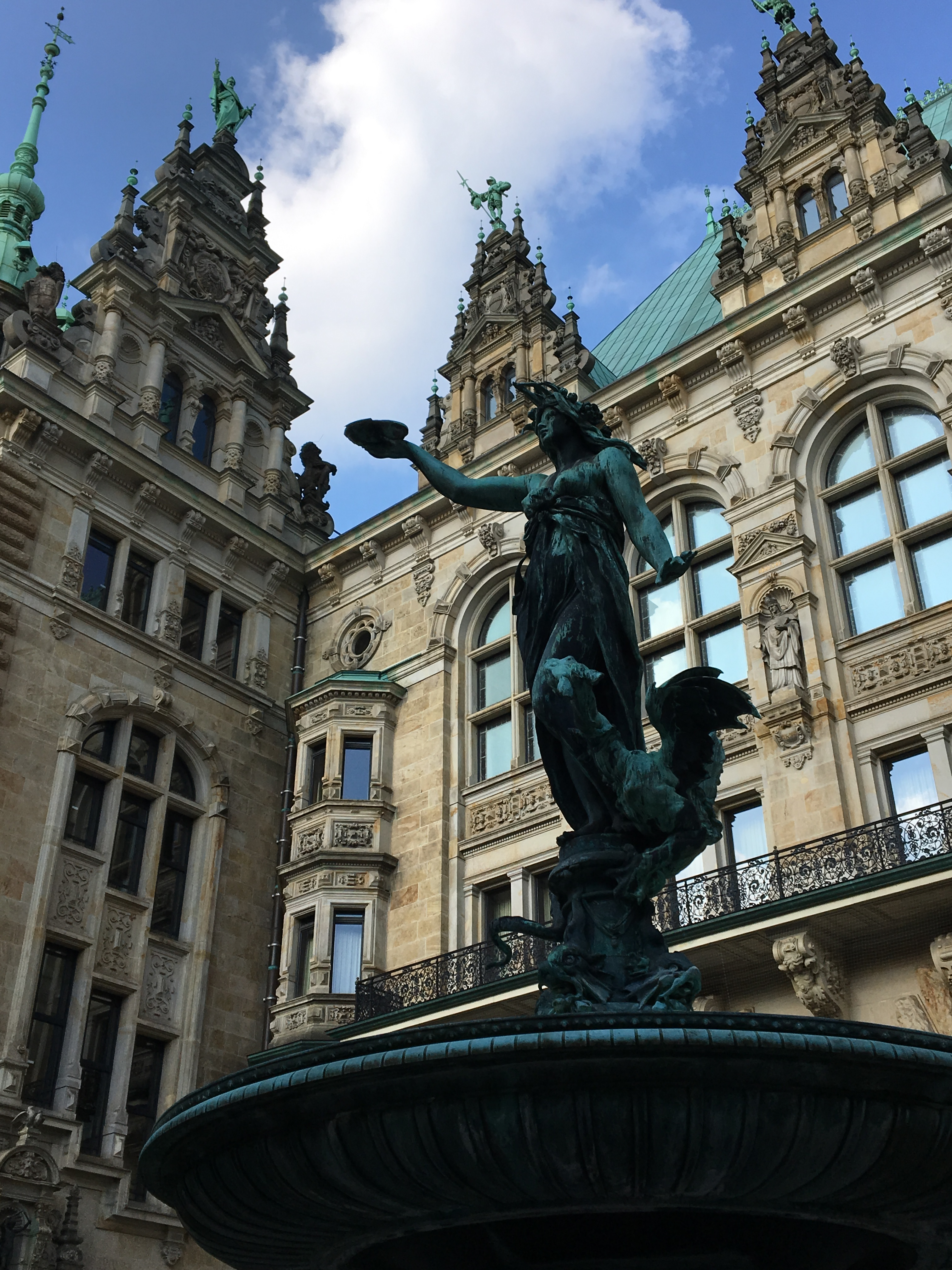 Escultura que preside la fuente del ayuntamiento de Hamburgo