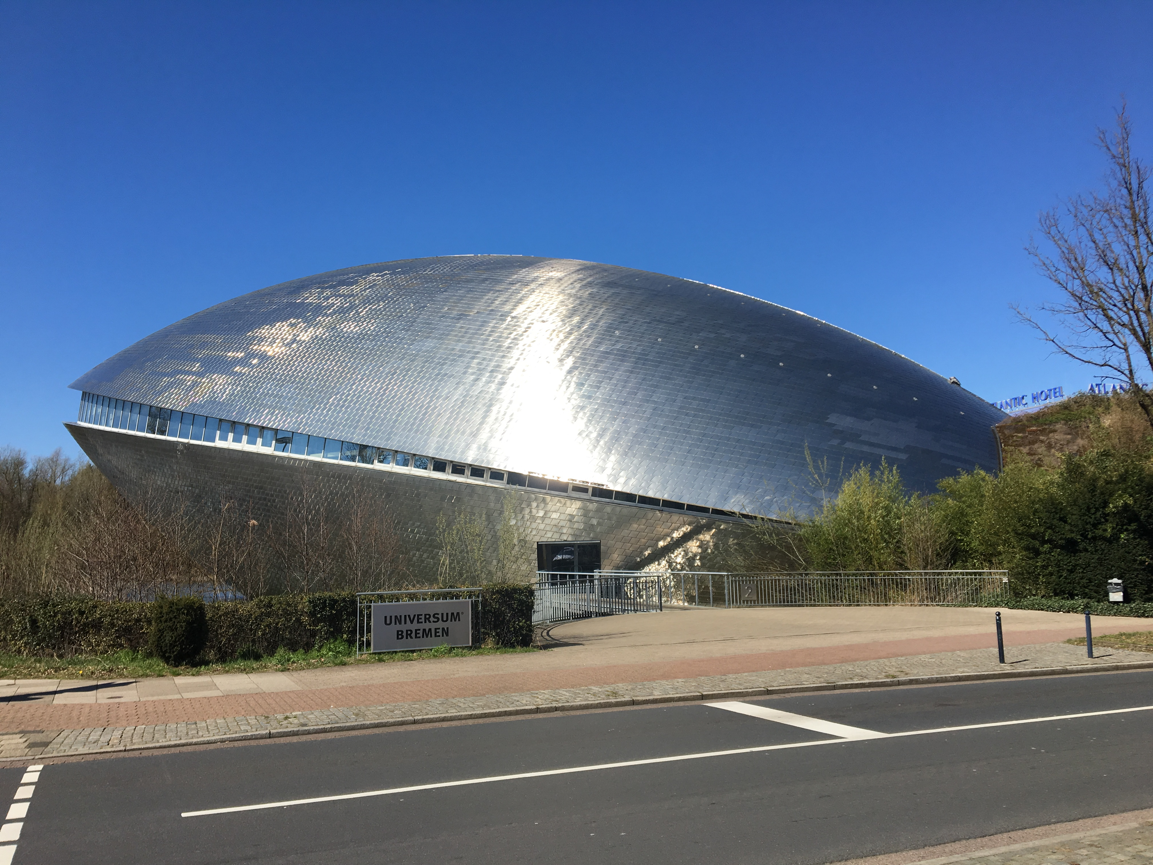 Vista externa del Universum Bremen. Universum Bremen es un museo divulgativo de la ciencia en Bremen, Alemania. El espacio está pensado para que los visitantes interactúen con la mayoría de las aproximadamente 250 exposiciones. El museo recibe un promedio de 450.000 visitantes al año.