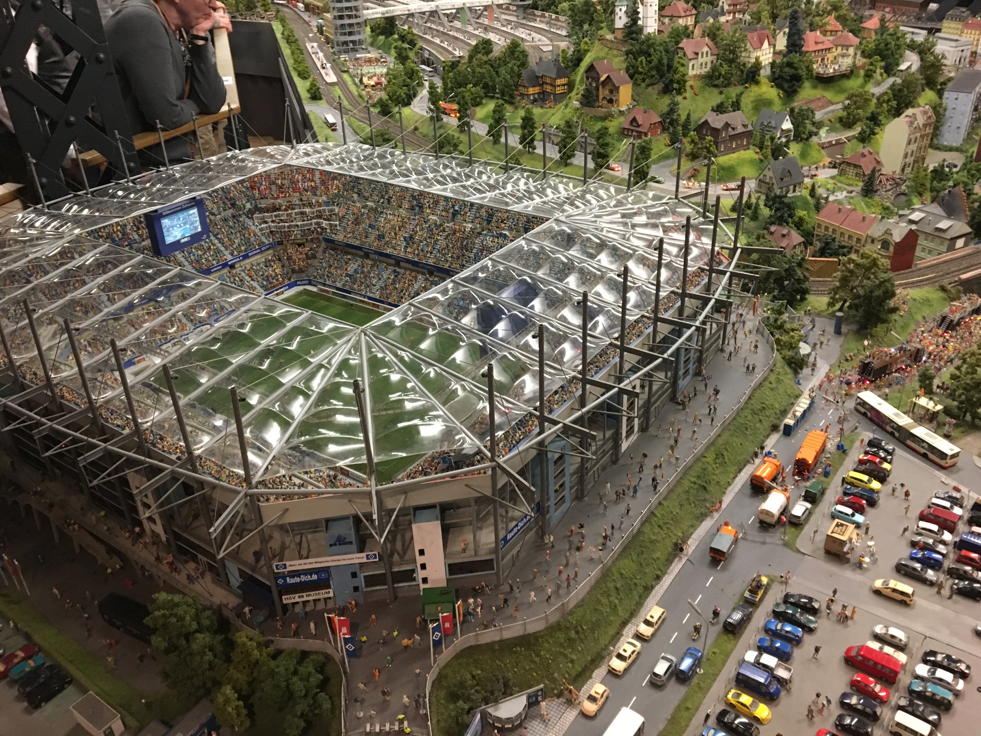 Estadio en el museo de las miniaturas de Hamburgo. Miniatur Wunderland (lit. País de las Maravillas en Miniatura) es una construcción de modelismo ferroviario situada en Hamburgo (Alemania) y es la mayor del mundo