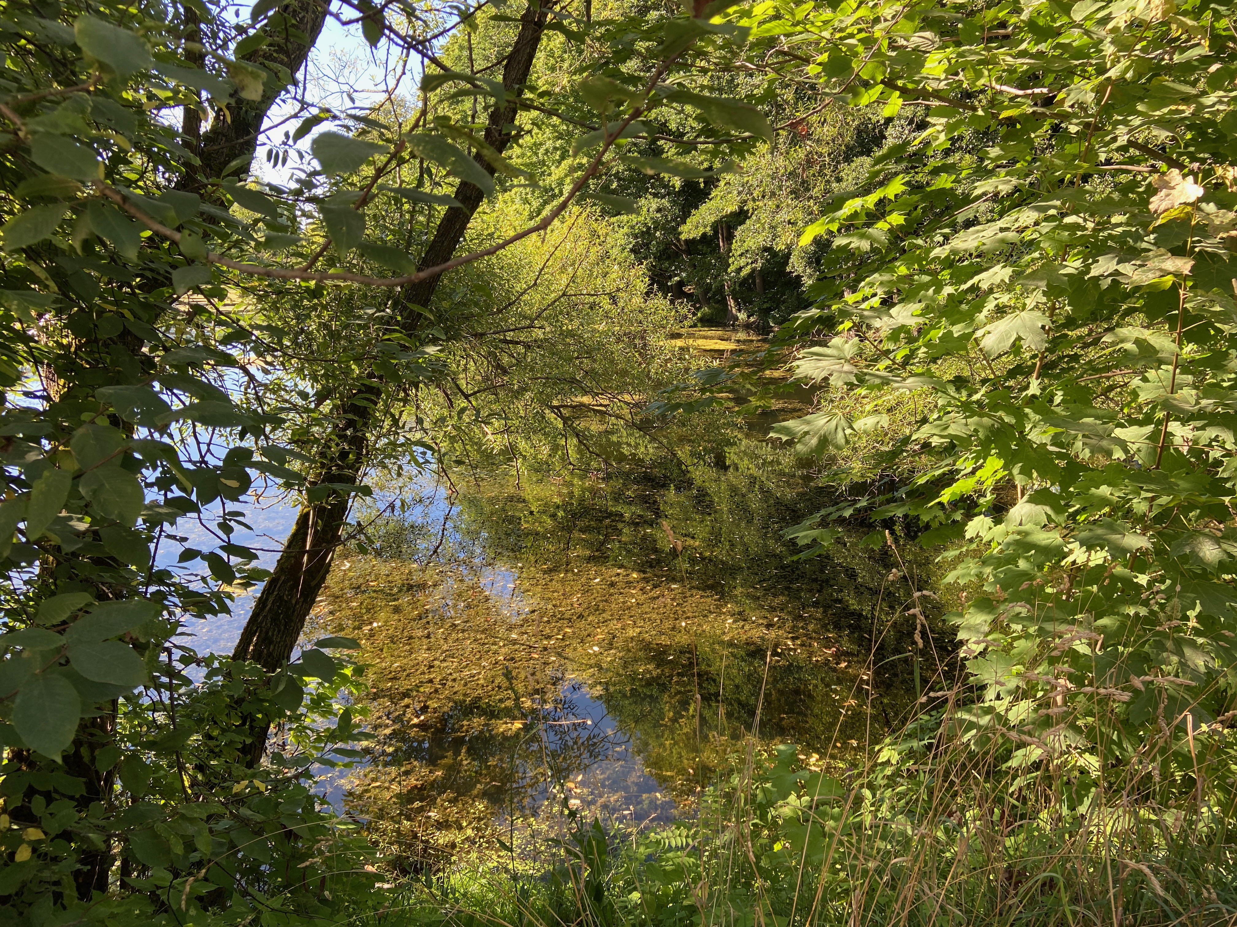Vegetación y lago iluminado por el sol