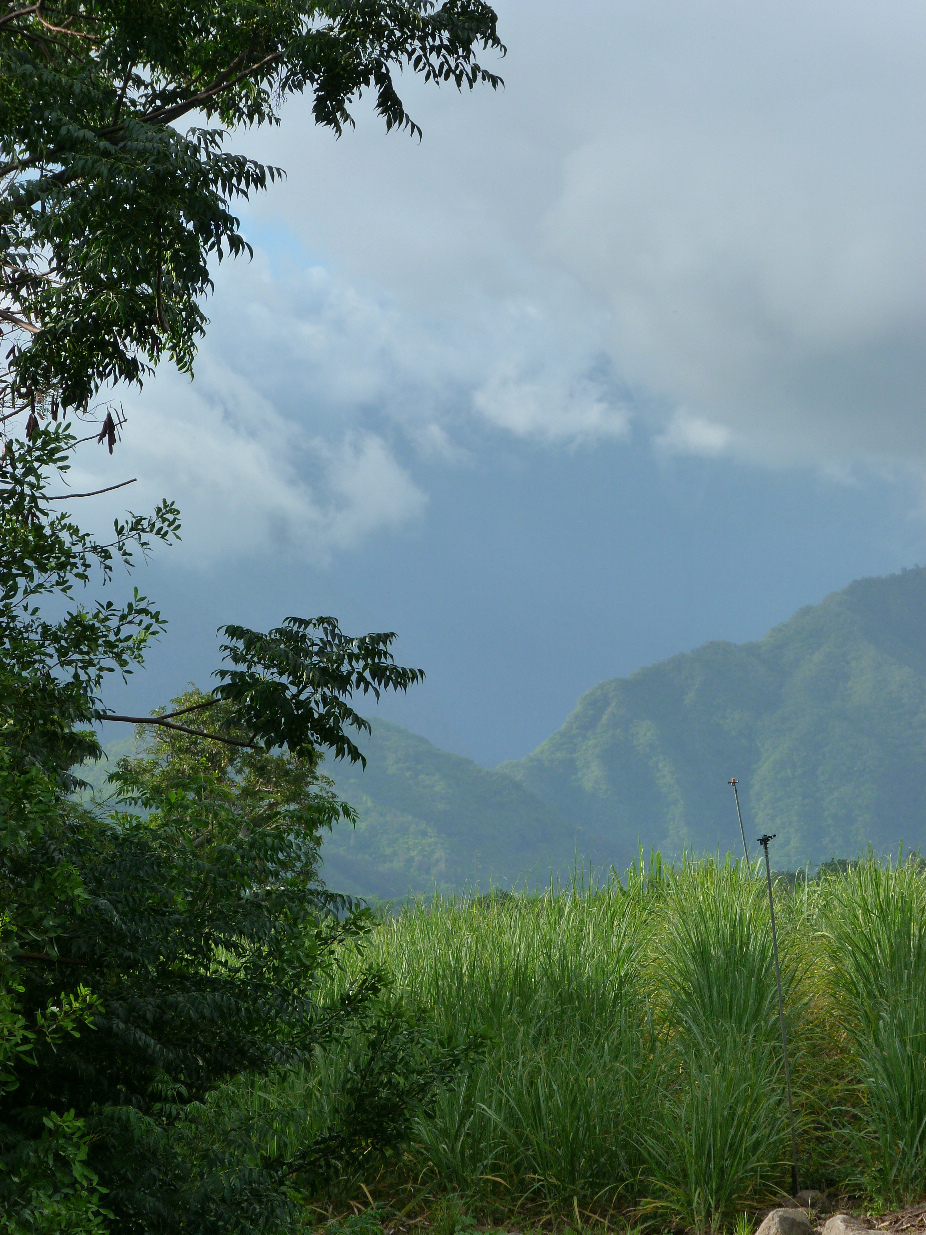 Paisaje de la isla de Reunion donde se visualiza el sistema montañoso y la vegetación.