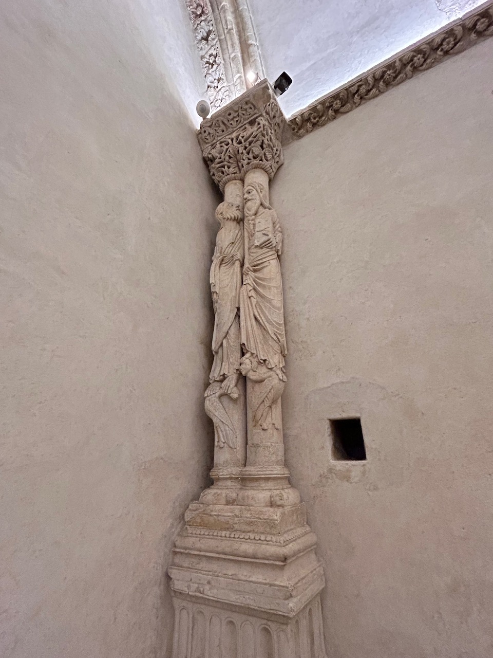 Estatuas románicas de los apóstoles Santiago el Mayor y San Juan situadas en el piso alto de la Cámara Santa de la Catedral de Oviedo.