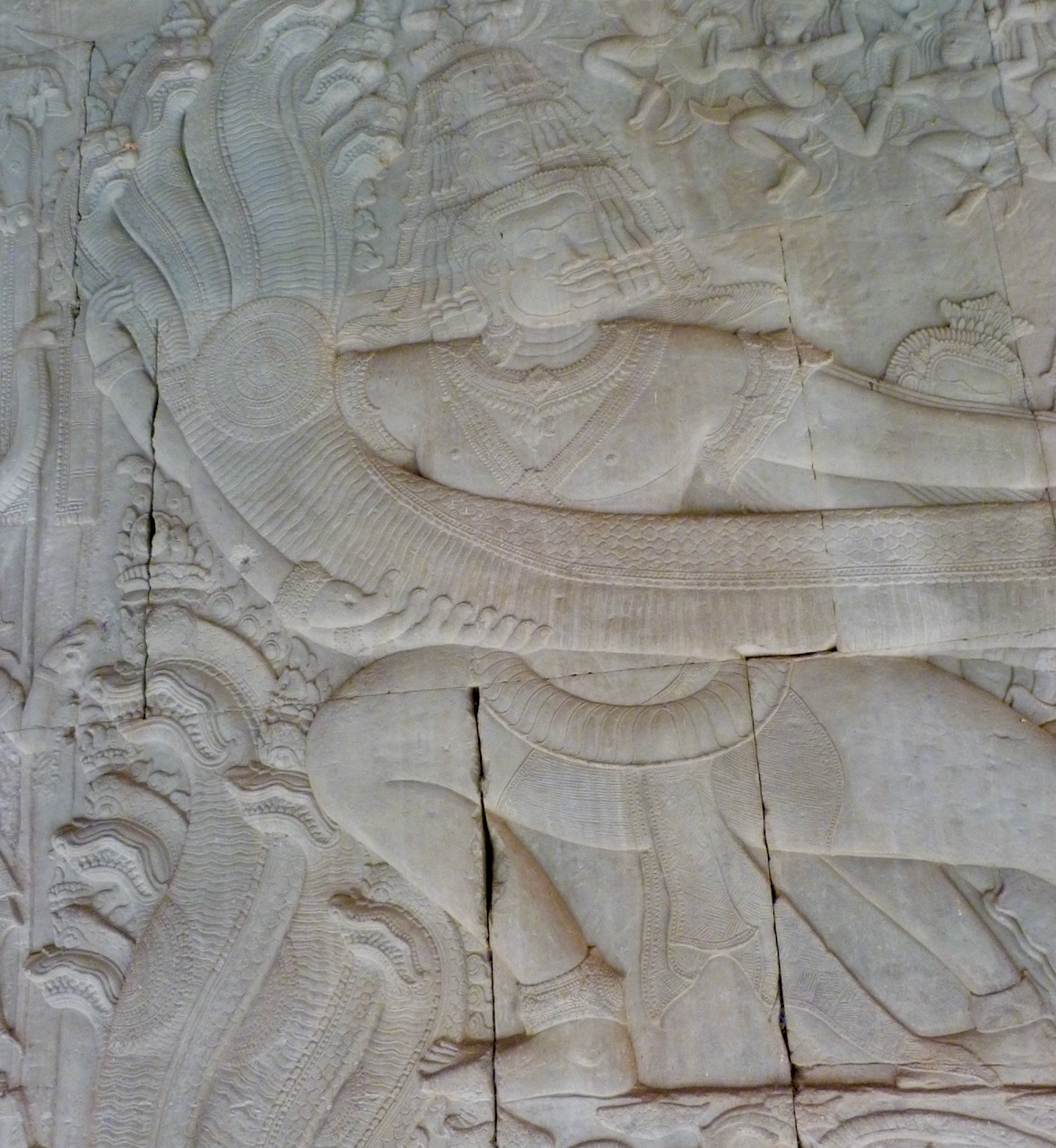 La sección sur de la galería oriental está decorada con la secuencia de bajorrelieves más famosa de Angkor Wat, conocida como Batido del Océano de Leche. Estas tallas ejecutadas con mano maestra representan a 88 asuras a la izquierda y a 92 devas con cascos crestados, que baten el océano para extraer el elixir de la inmortalidad.