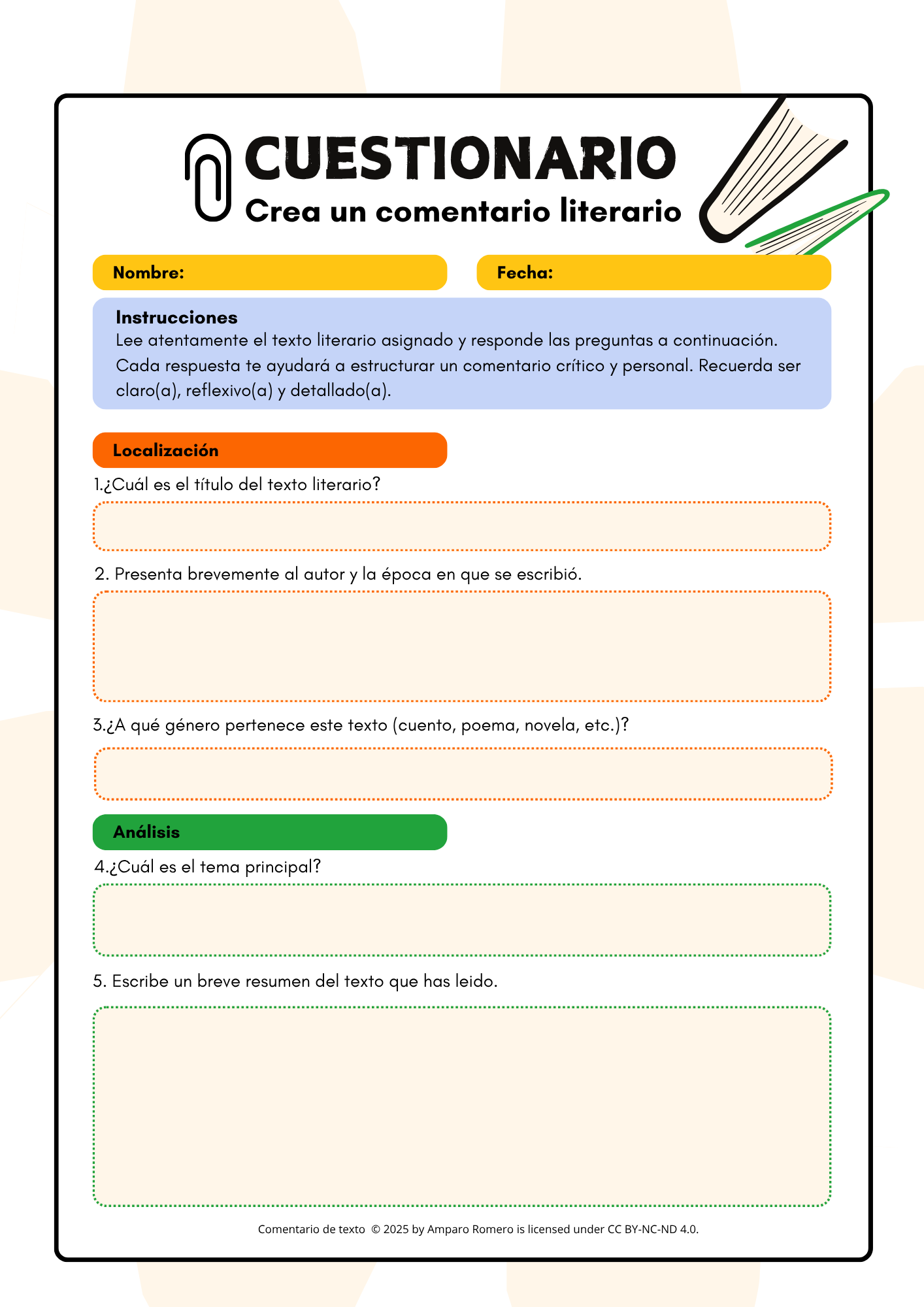 Cuestionario para realizar un comentario de texto