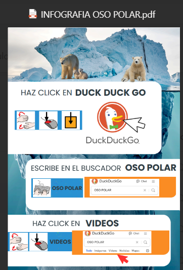 El recurso realizado es una infografía en Canva sobre la guía dirigida de información acerca del proyecto trabajado en el aula (animales en peligro de extinción: osos polares)