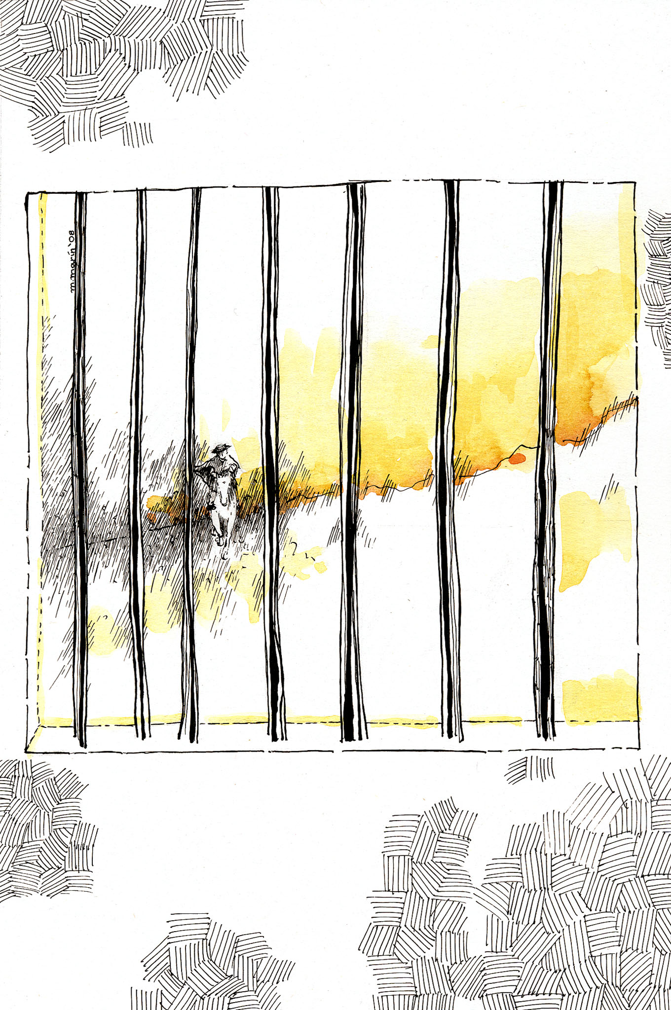 El fin: Un punto se agitó en el horizonte y creció hasta ser un jinete, que venía, o parecía venir, a la casa