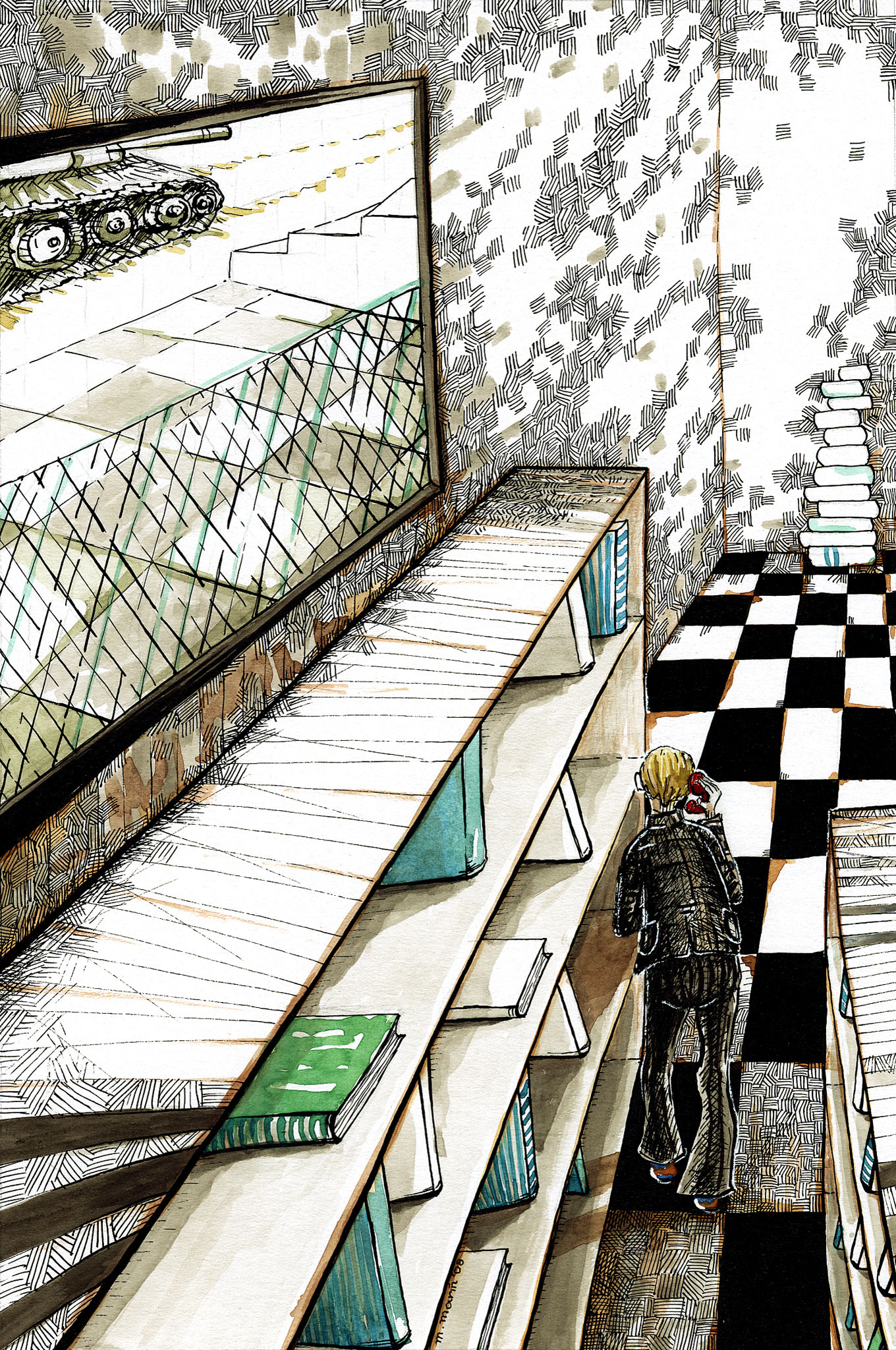 La forma de la espada: Moon, en la biblioteca, hablaba con alguien por teléfono